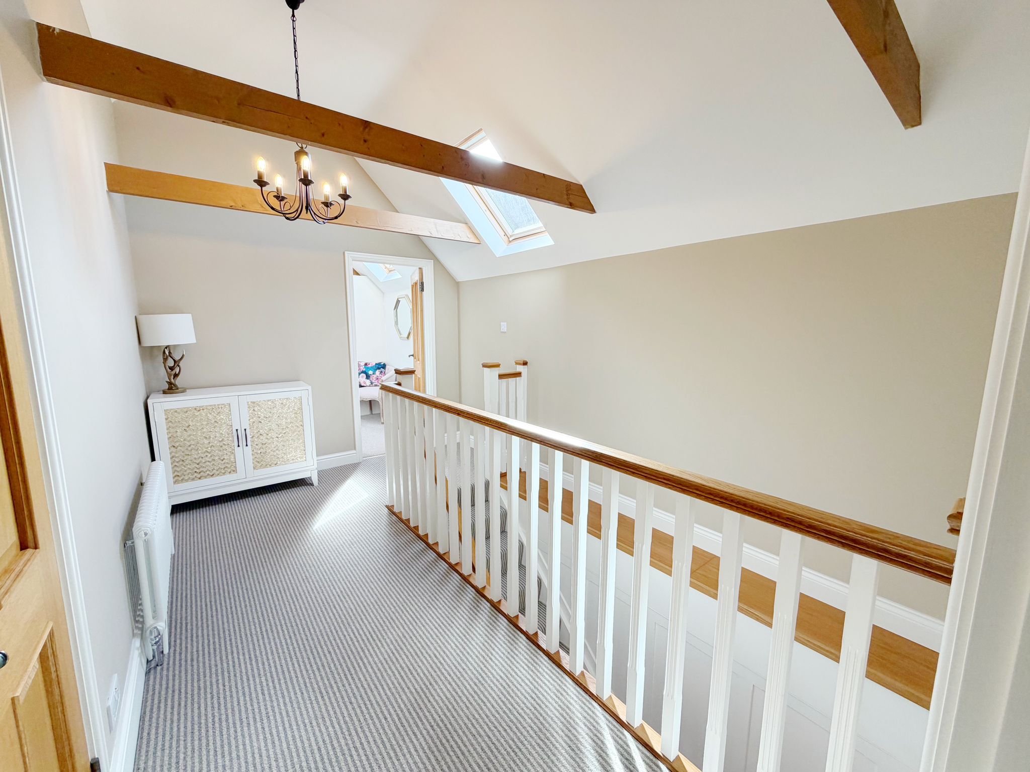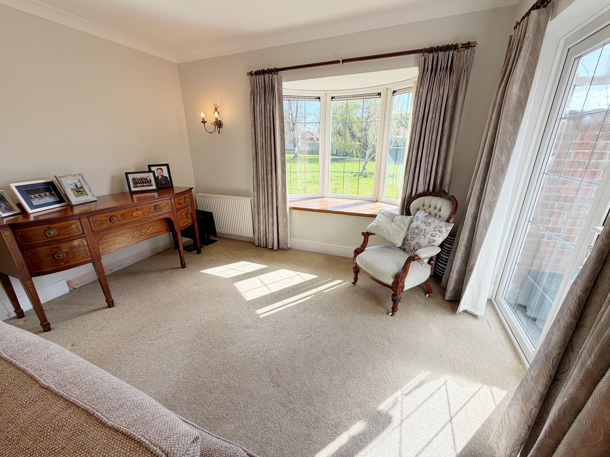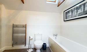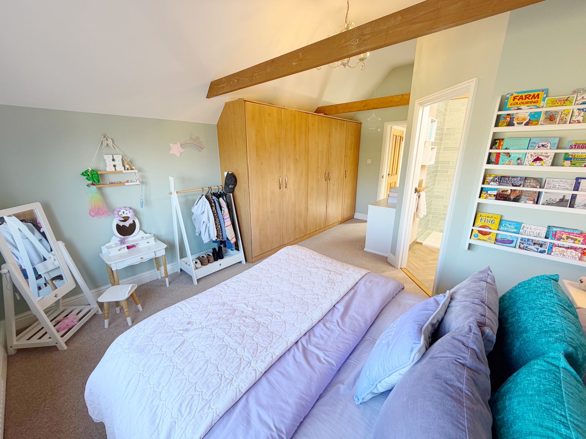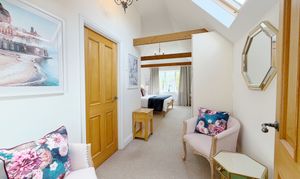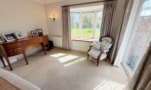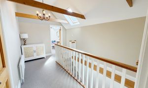 At the heart of the home is a stunning, high specification kitchen, refitted with a range of integrated appliances and flowing seamlessly into a bright open plan dining area. The ground floor further comprises a generous entrance hall, large lounge, a dedicated study or playroom, and a stylishly refitted family bathroom. Flexibility is a key feature of this floor, which also hosts two well-proportioned bedrooms; one serves as a guest suite with its own en-suite shower room, while the other is currently utilised as a comfortable secondary sitting room.