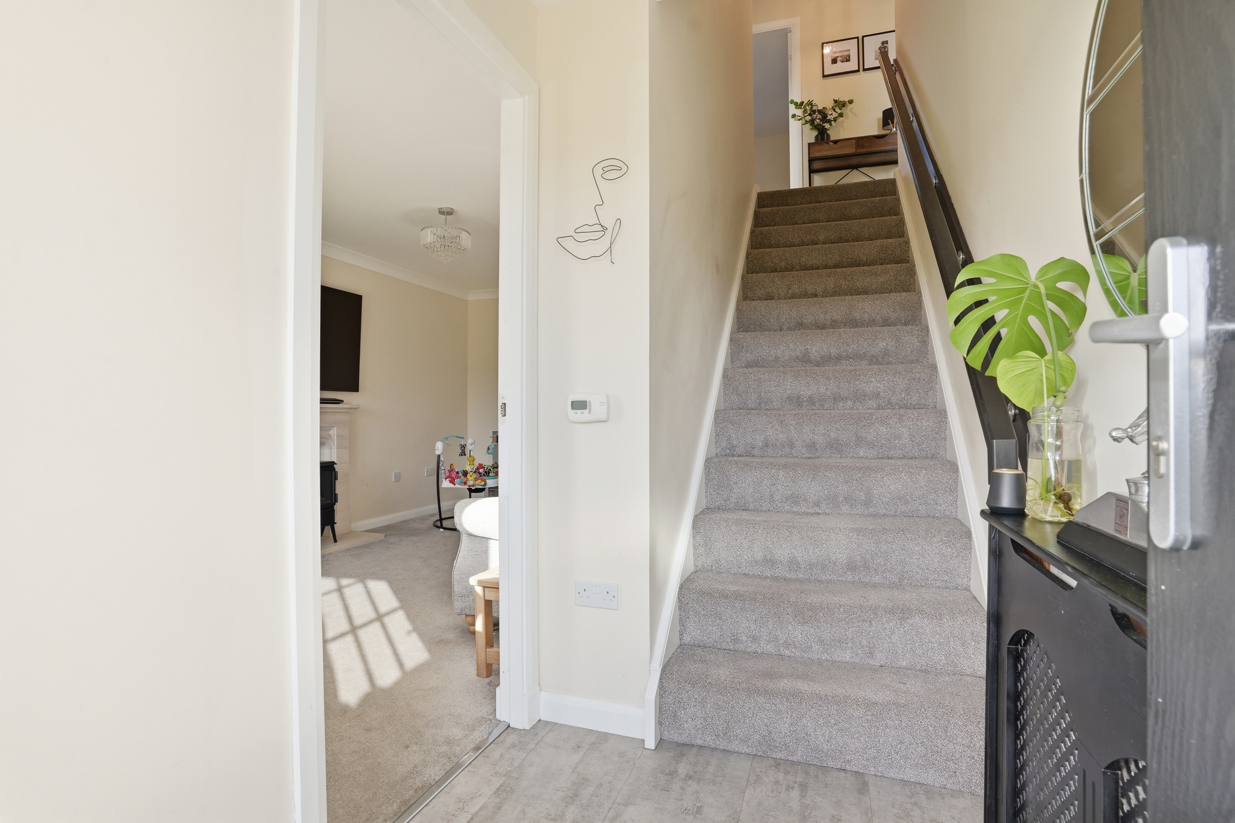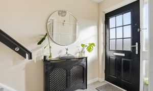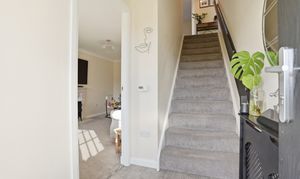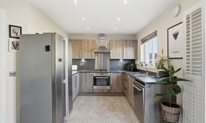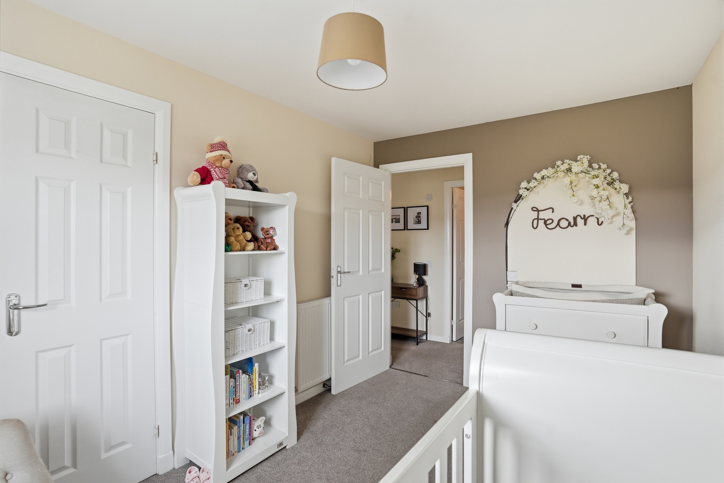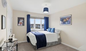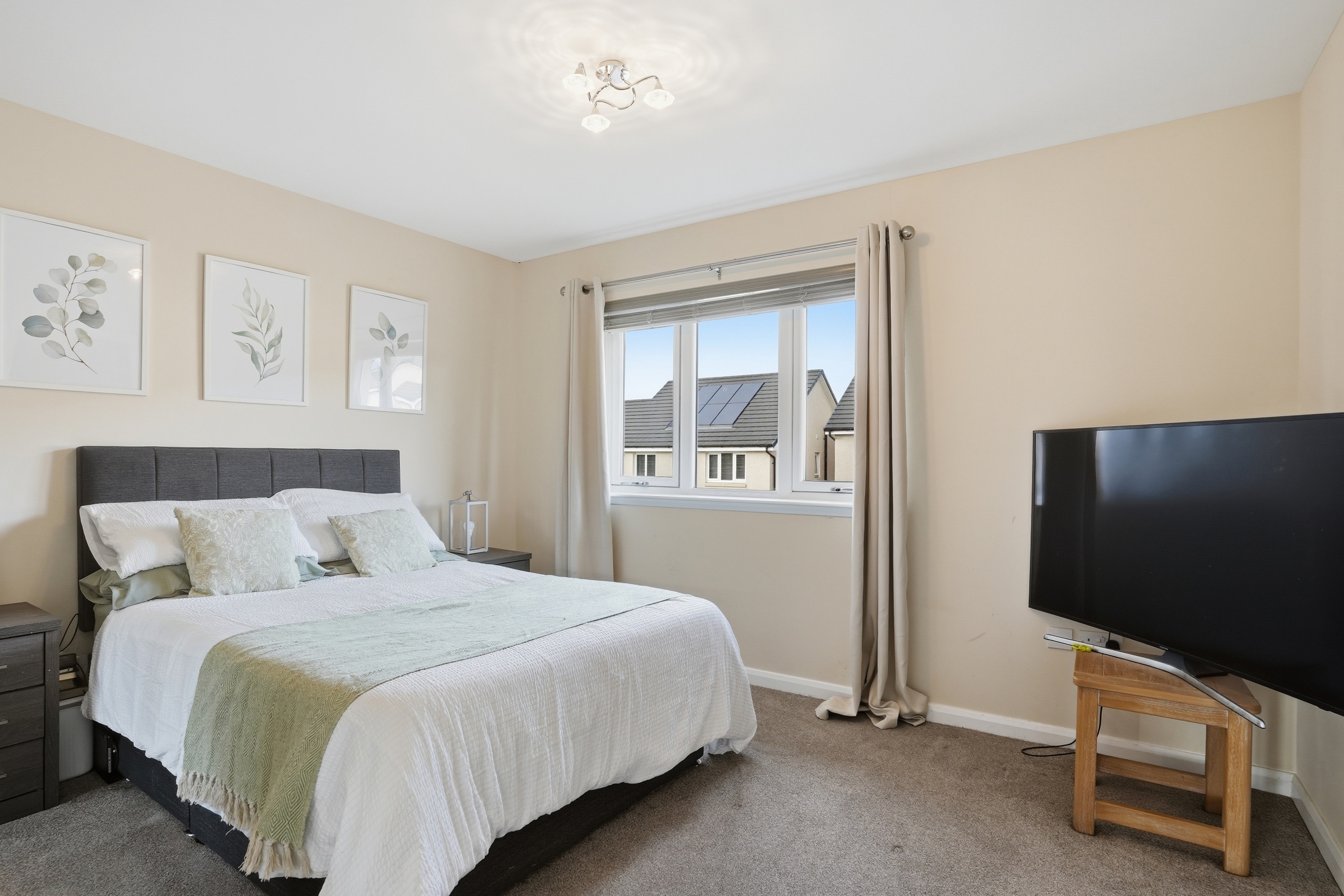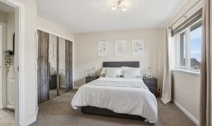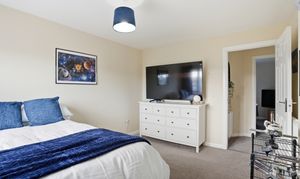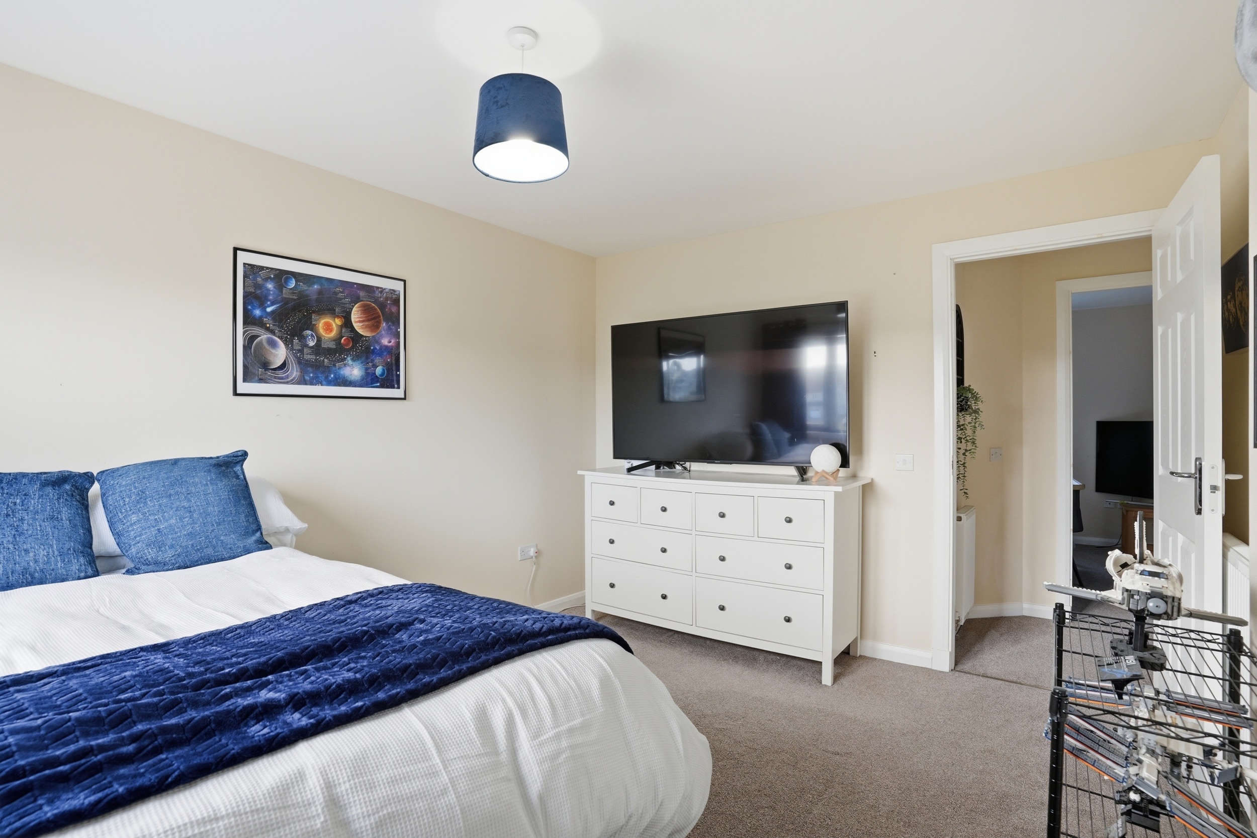 Upstairs, the property offers three generously sized double bedrooms. The principal bedroom is positioned to the rear of the home and comfortably accommodates a super king size bed with bedside cabinets. This room benefits from fitted wardrobes and a private ensuite shower room comprising a modern three piece suite. Bedroom two is located to the front of the property and also accommodates a king size bed with bedside cabinets, along with fitted wardrobe space. Bedroom three is a versatile double room that can be used as a guest bedroom, nursery or home office.
