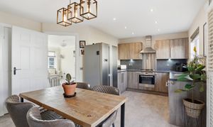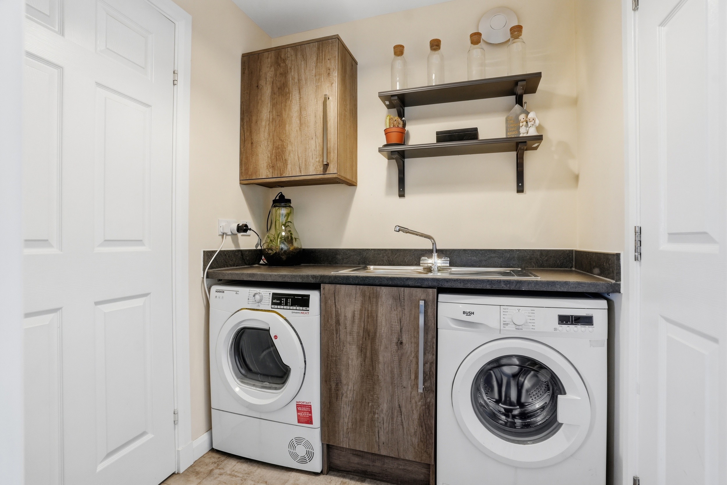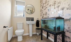 Just off the dining area is the utility room, which provides space for a washing machine and tumble dryer along with additional storage. From here, there is internal access to the garage, offering further practicality. A downstairs WC is also conveniently located on the ground floor.