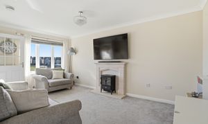 Upon entering, you are welcomed into a bright and spacious hallway. Positioned to the left-hand side at the front of the property is the lounge, a comfortable and well proportioned room that easily accommodates two large sofas and a media wall. A large front facing window allows natural light to fill the space, creating a warm and inviting environment for everyday living.