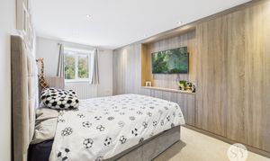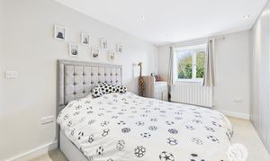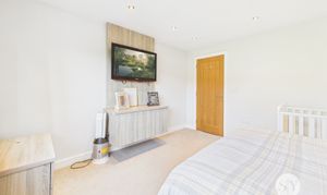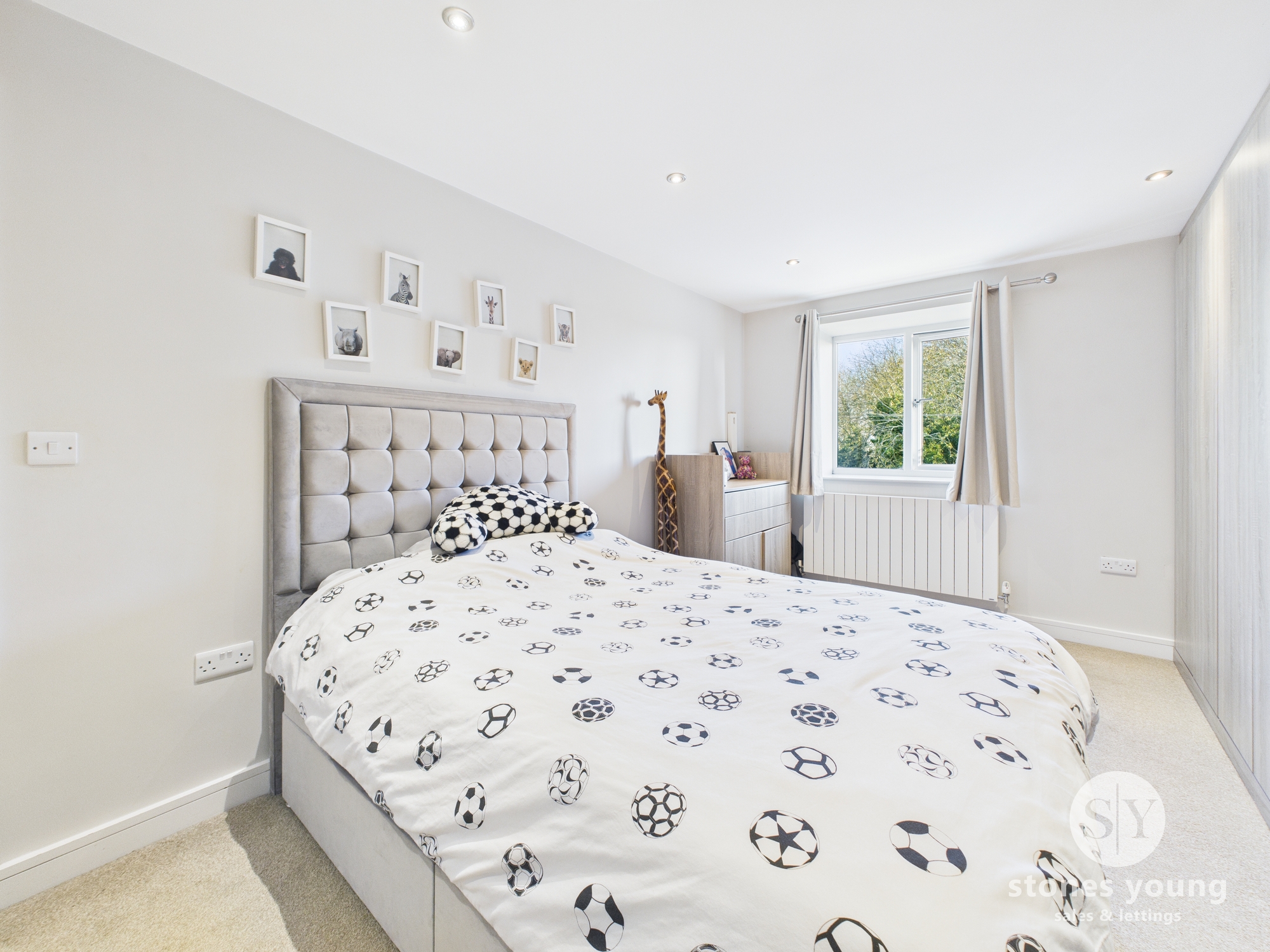 Double bedroom with carpet flooring, fitted wardrobes, double glazed uPVC window, panel radiator.