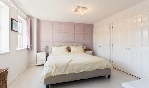 Upstairs, the first-floor landing leads to four well-sized bedrooms. The two largest bedrooms benefit from built-in wardrobes, while the primary bedroom also boasts a contemporary en-suite shower room. All four bedrooms offer comfortable accommodation and are ideal for family members or guests. A modern family bathroom completes the first floor, offering a clean and stylish space with bath and overhead shower.