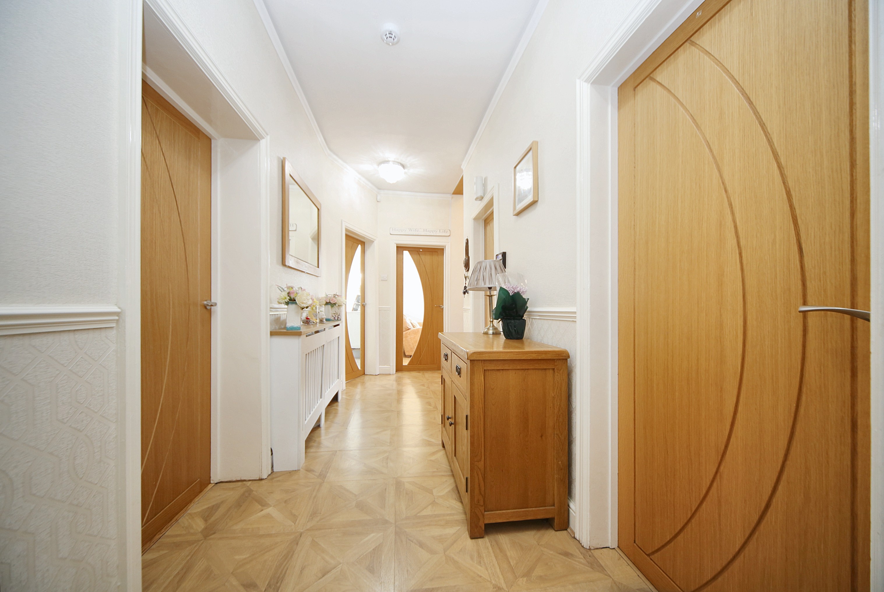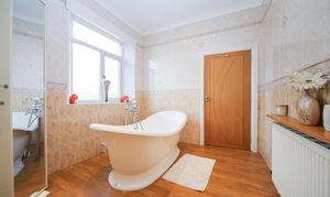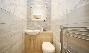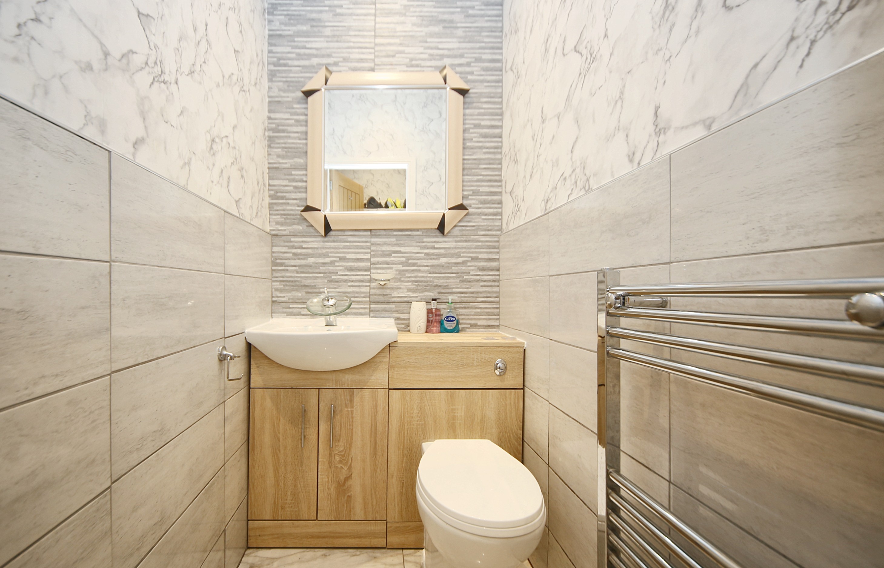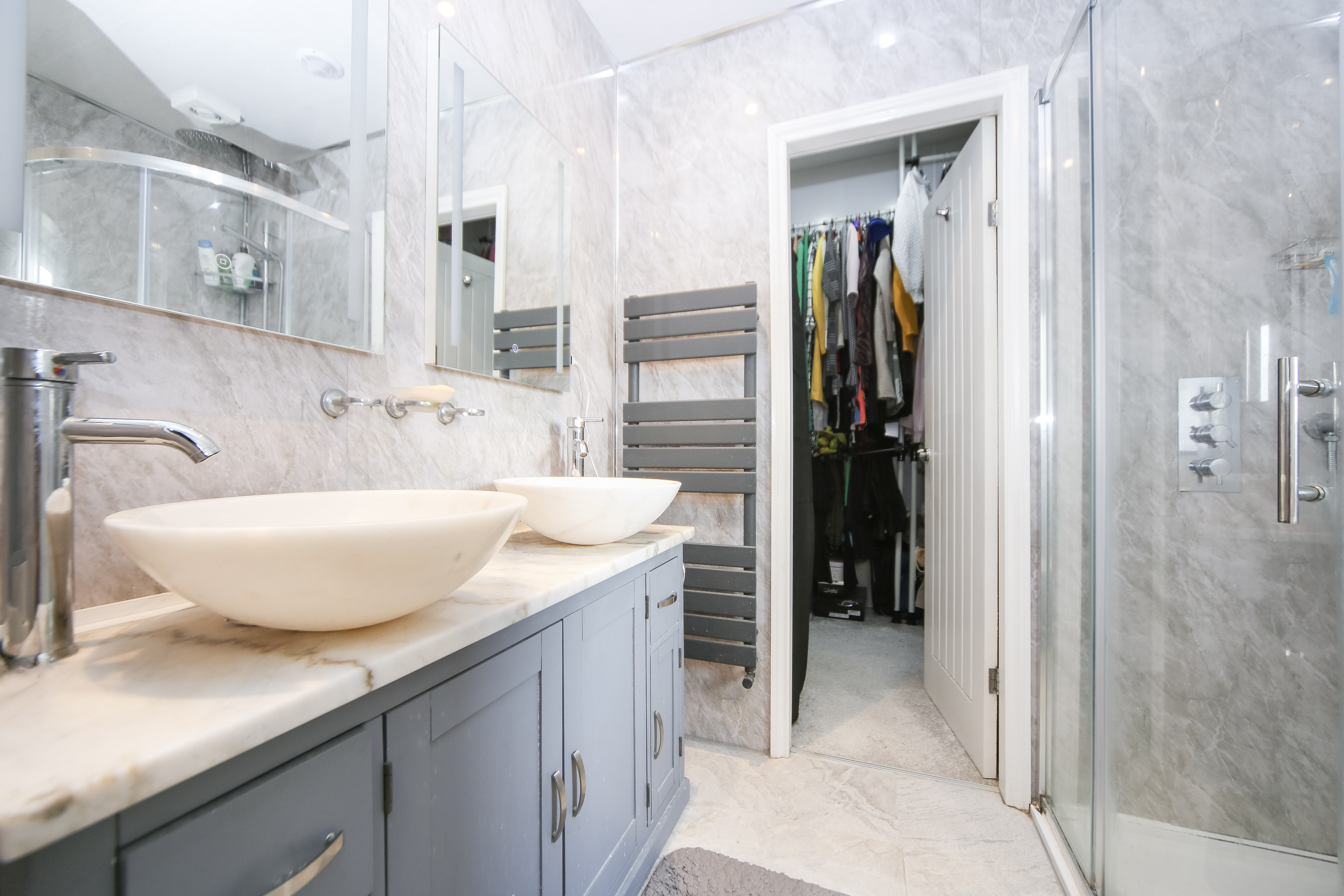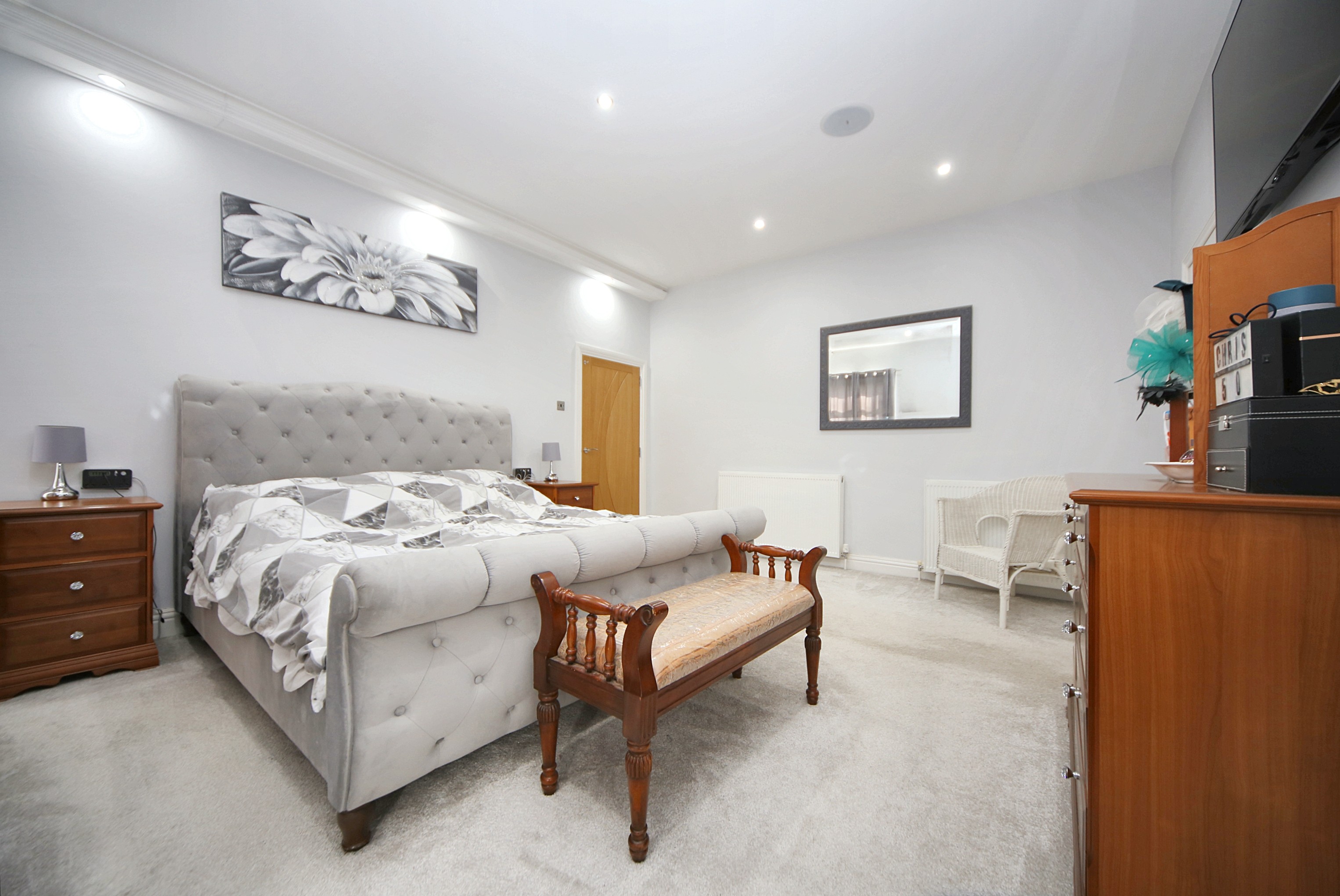 To the first floor, the grand oak staircase leads to three generously sized bedrooms, the master bedroom features a Jack and Jill en-suite whilst also benefitting from two walk in wardrobe spaces ideal for the extra storage. The second bedroom also with an en-suite shower room has been finished with large fitted wardrobes for the additional space a home owner needs whilst the third bedroom features dual aspect windows. The principal family bathroom comprises of a four-piece suite with a free standing bath and corner multi-spray shower cubical. The separate w.c with vanity sink completes the first floor accommodation. This unique home also benefits from a large loft with a staircase leading up to it which is partially boarded providing potential for conversion. Other benefits to the property include oak laminate flooring and luxury oak doors leading into all rooms.
