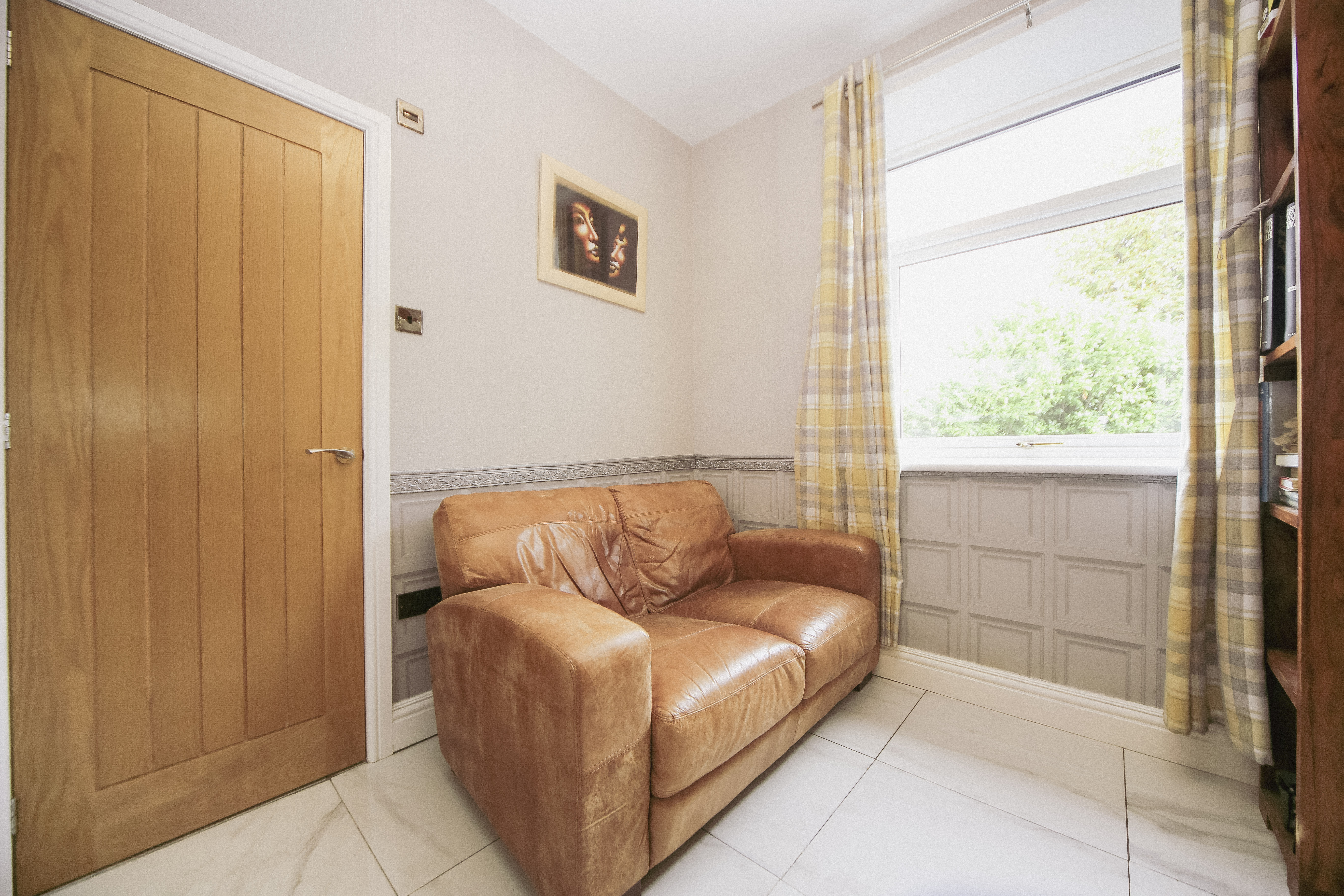 Internally this impressive home is arranged across two floors and comprises of; a welcoming entrance porch with a boot room, the entrance hallway which gives access to the large family kitchen, the heart of the home featuring a breakfast bar, luxury quartz worktops, kick board lighting and the fitted kitchen contains integrated appliances and ample storage. You will also find ample understairs storage space and a study which is ideal for those working from home leading to a cloakroom with a W.C. De Trafford House offers flexible living with a separate dining area for the more formal occasions making it perfect for entertaining. You will also find access to the spacious lounge with a media wall, LED feature ceiling and french doors overlooking the rear garden whilst also providing access to the conservatory filled with natural light from the feature glass ceiling.