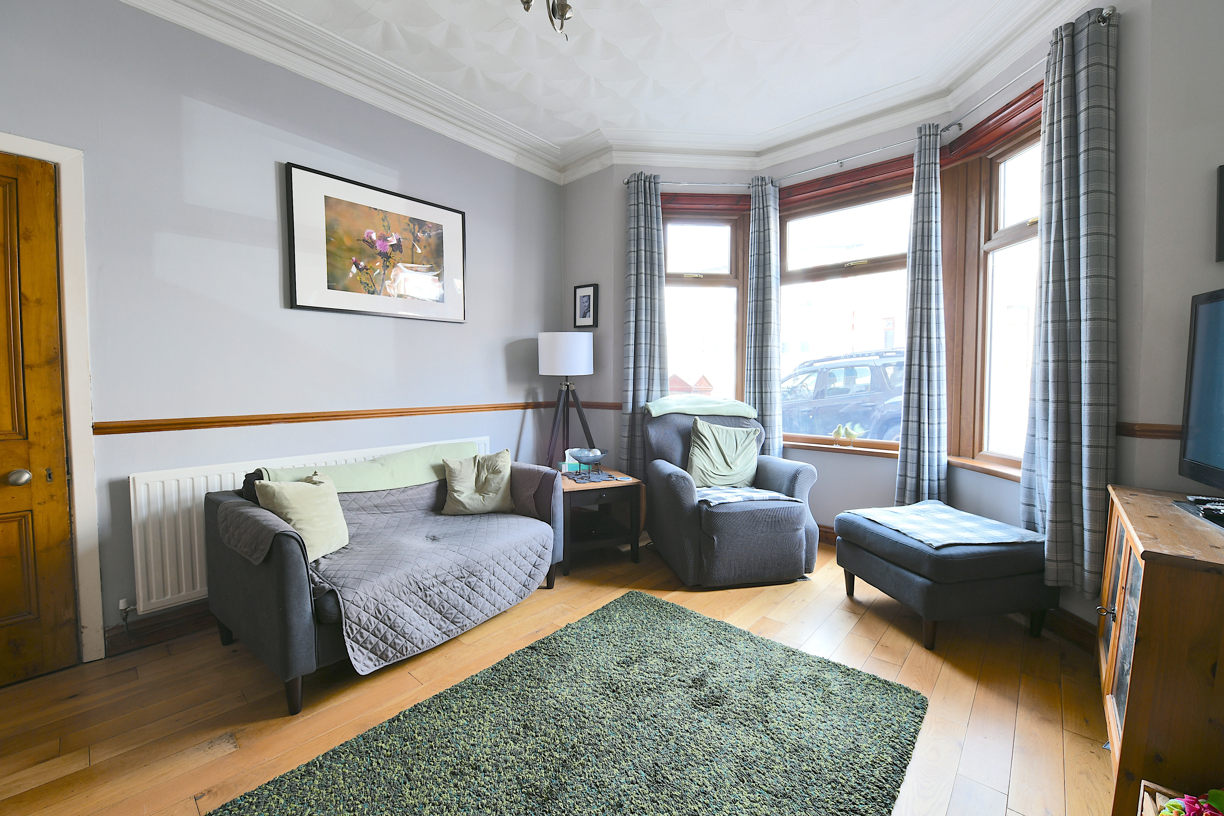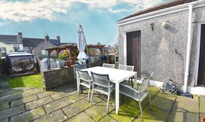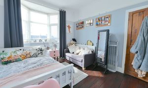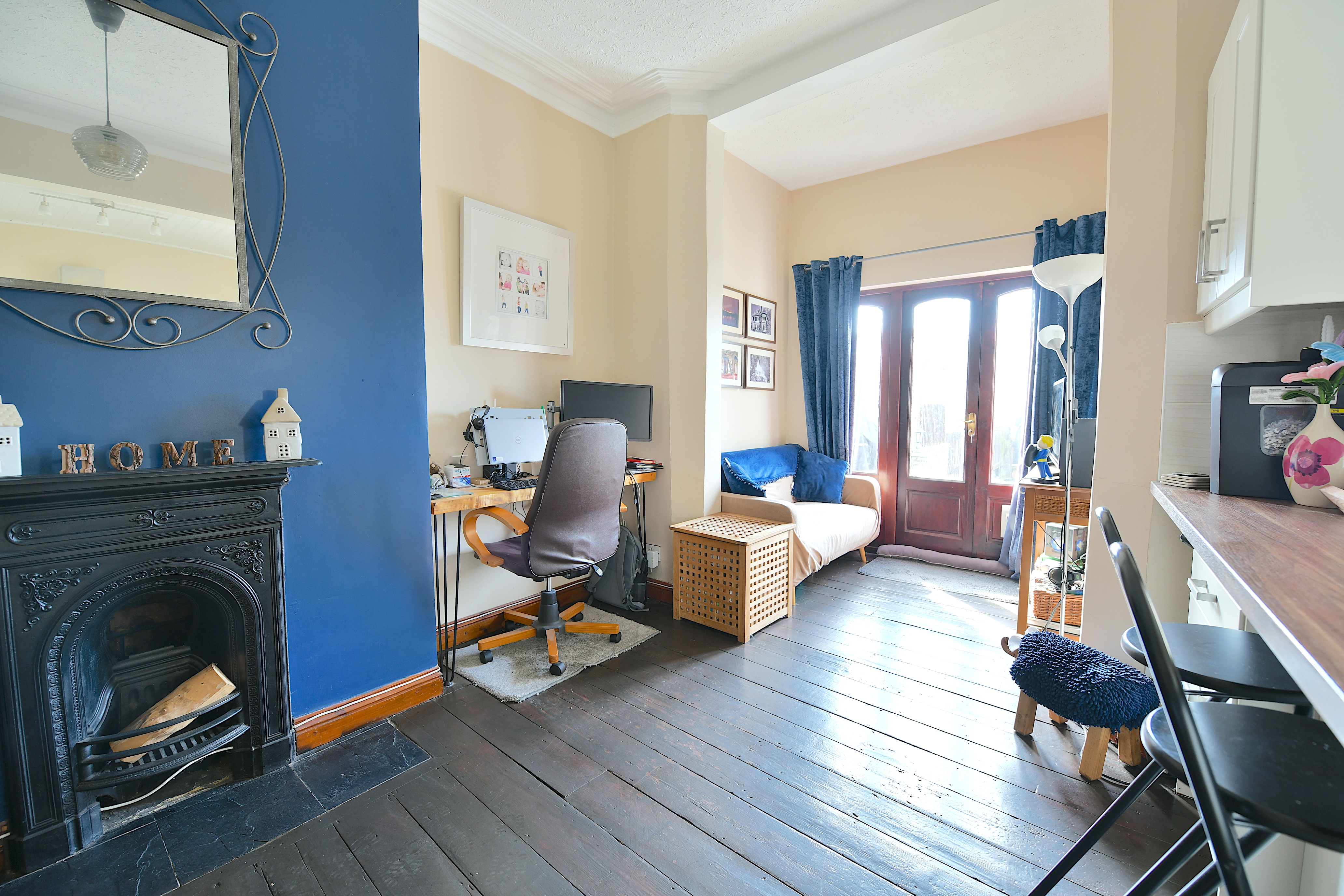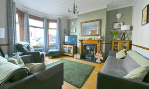 Upon entering, you are greeted by the original tiled hallway, setting the tone for the many period features found throughout the home. The spacious front living room boasts a striking bay window that floods the space with natural light, complemented by a stunning fireplace that creates a warm and inviting atmosphere. The open-plan kitchen and dining area is perfect for hosting and family gatherings, with ample wall and base units, generous worktop space, and a breakfast bar for casual dining. Upstairs, two generous double bedrooms and a well-proportioned single bedroom provide comfortable accommodation, while the beautiful bathroom features a white suite including a freestanding bath, walk-in shower cubicle, heated towel rail, and a stylish vanity unit. The remarkable attic room offers a versatile space, ideal as a playroom, office, or even a fourth bedroom, adapting seamlessly to your family’s needs.