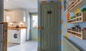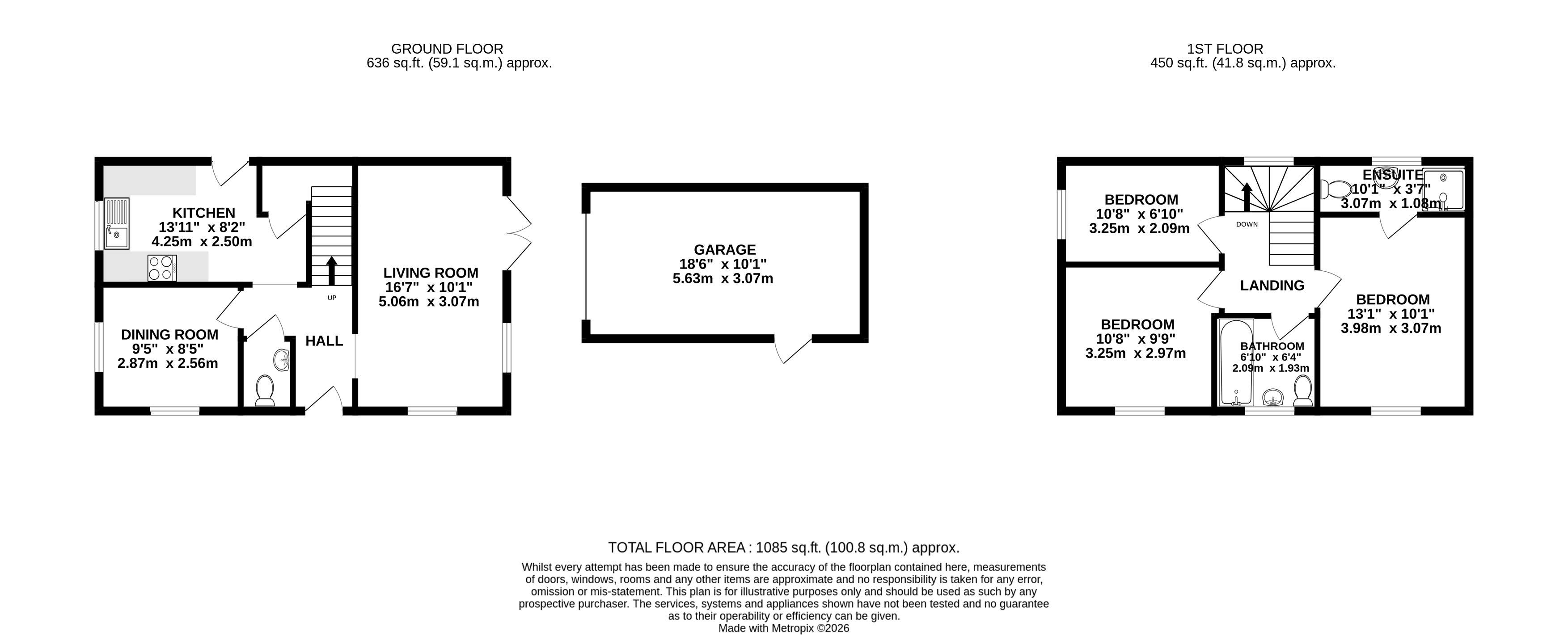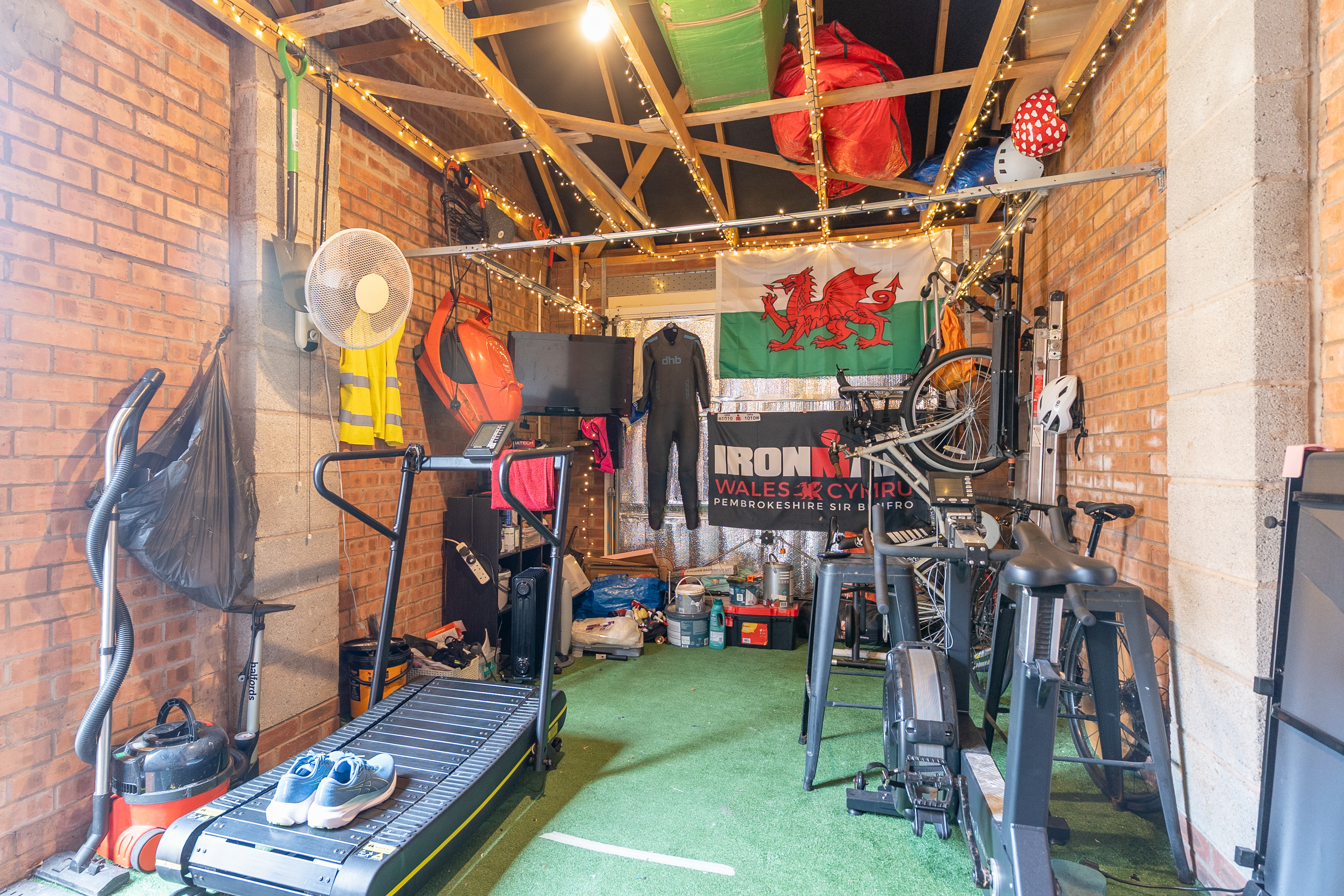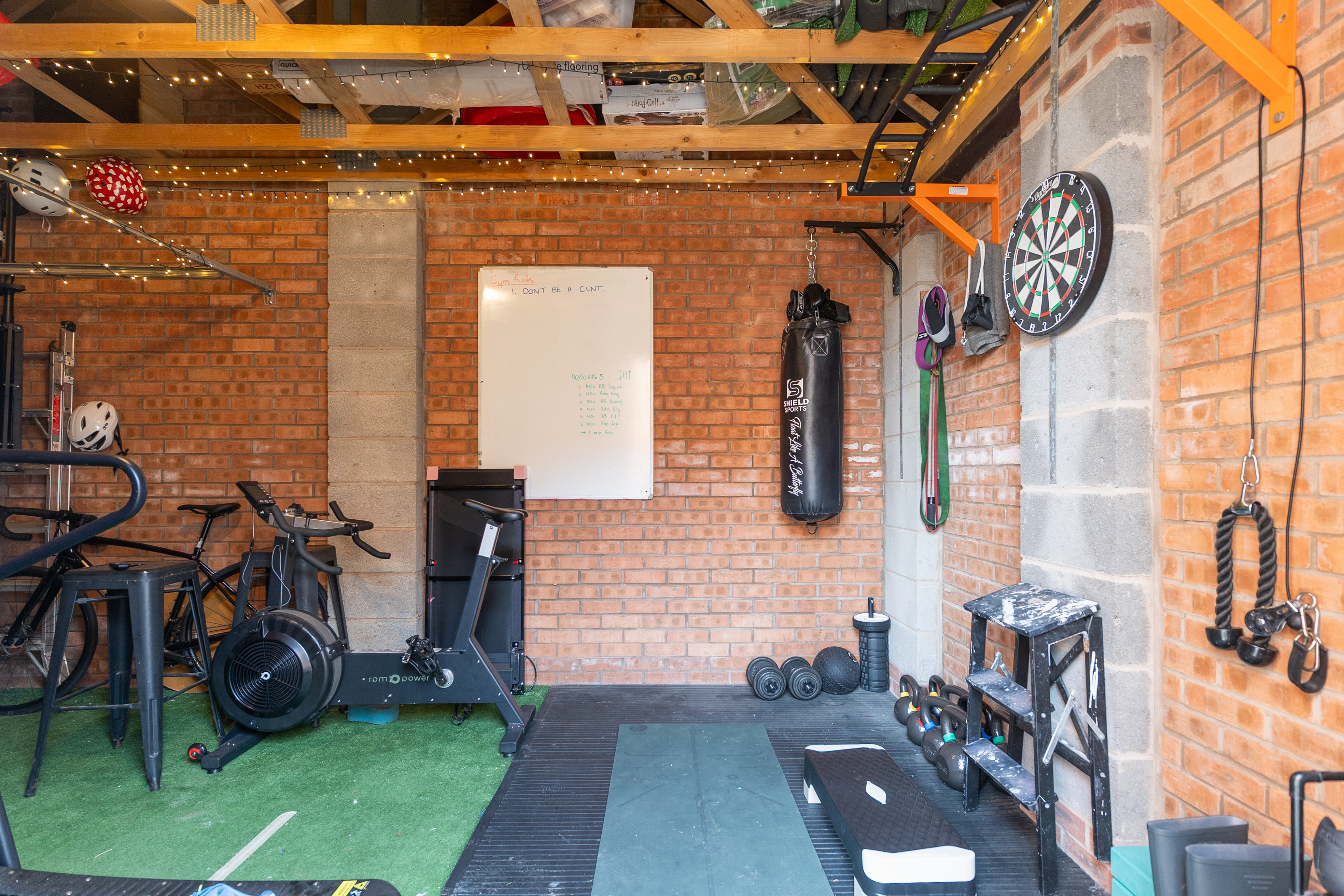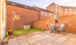 To the rear of the property is a driveway and garage, providing off-road parking and additional storage. The property also benefits from a large enclosed garden, featuring a combination of patio and lawn areas, offering an ideal outdoor space for relaxing, entertaining and family activities.