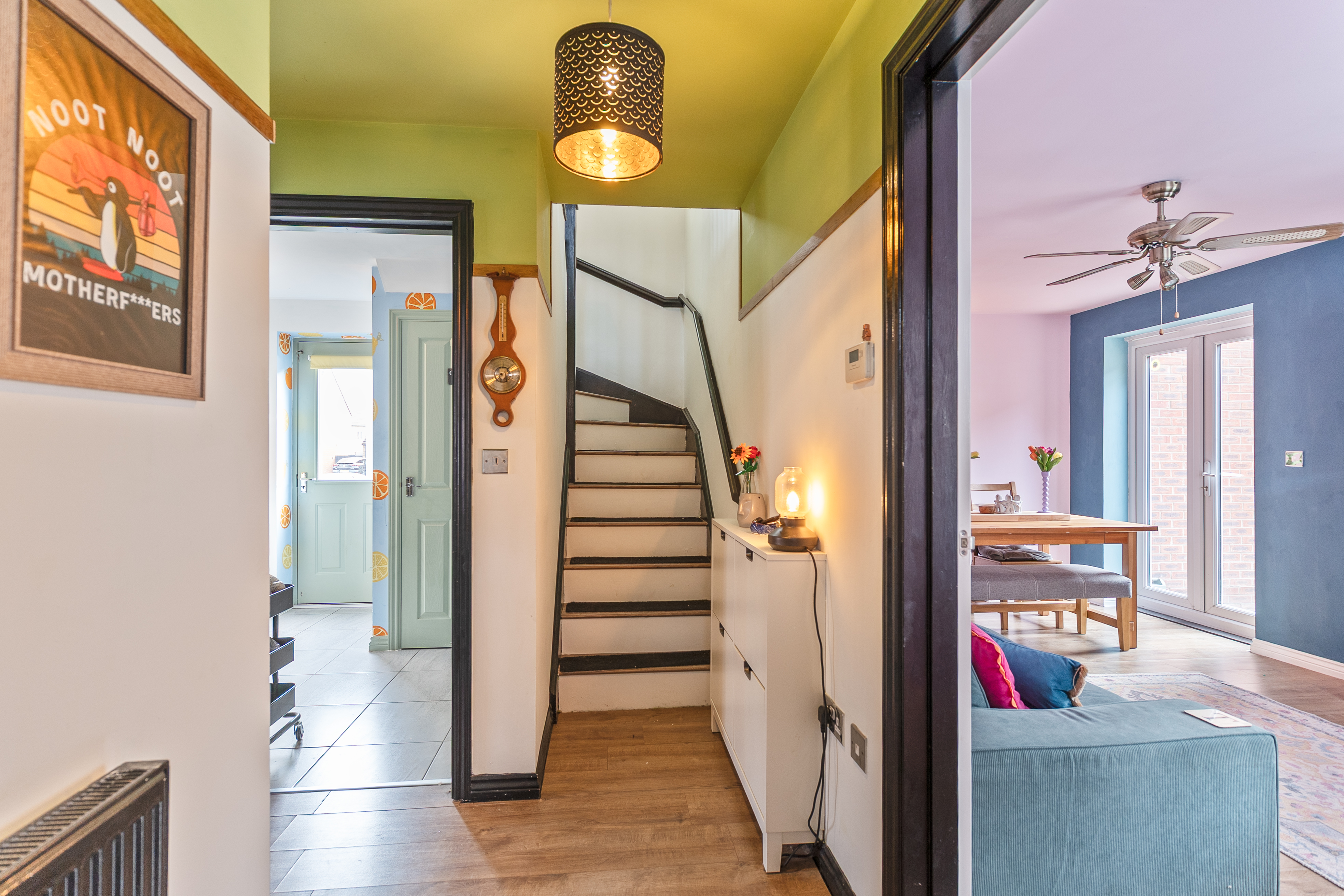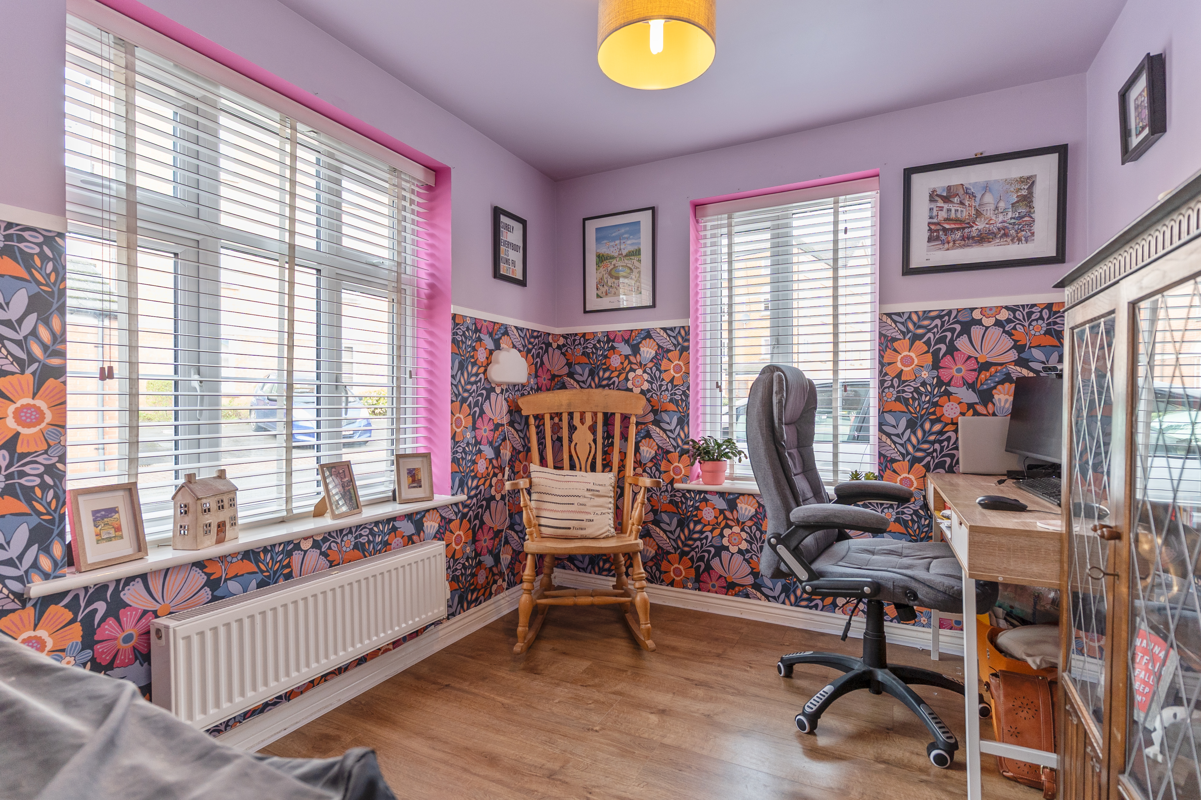 You enter the property through the hallway, which provides access to all ground floor rooms, the staircase leading to the first floor and a convenient cloakroom. To the right is the living room, benefiting from dual aspect windows and patio doors leading out to the rear garden, creating a bright and airy space ideal for relaxing. To the left is a second reception room, offering flexibility for use as a dining room, home office or additional sitting room. To the rear is the good-sized fitted kitchen, which provides ample storage and workspace and offers access out to the driveway at the rear.