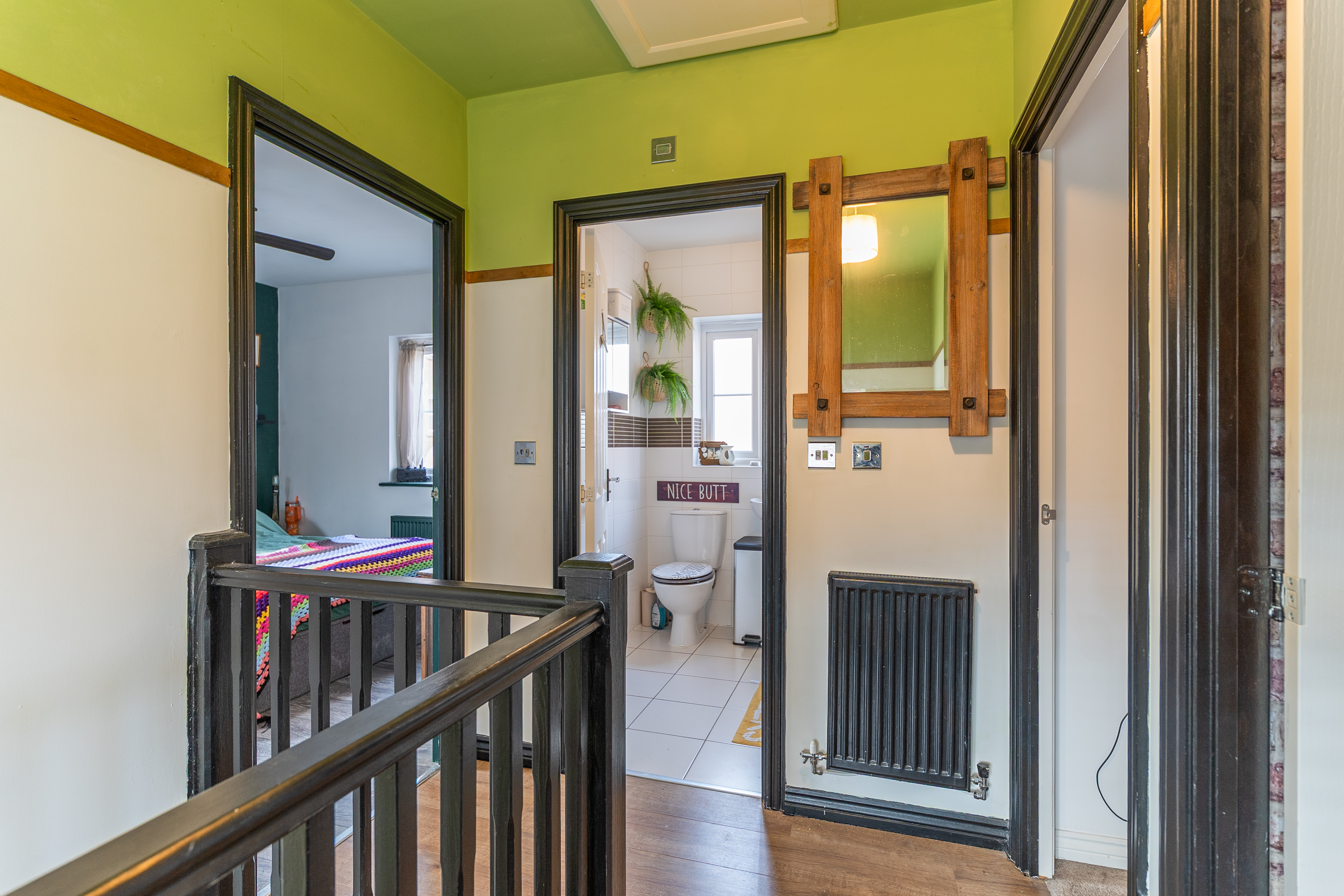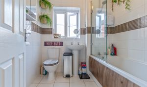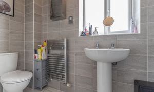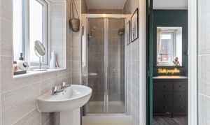On the first floor are three bedrooms and the family bathroom. The property offers two double bedrooms and a large single bedroom, providing versatile accommodation for families. The primary bedroom further benefits from an en-suite shower room, adding convenience and comfort. The family bathroom completes the first-floor layout.