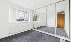 Double bedroom with carpet flooring, fitted wardrobes, double glazed uPVC window, panel radiator.