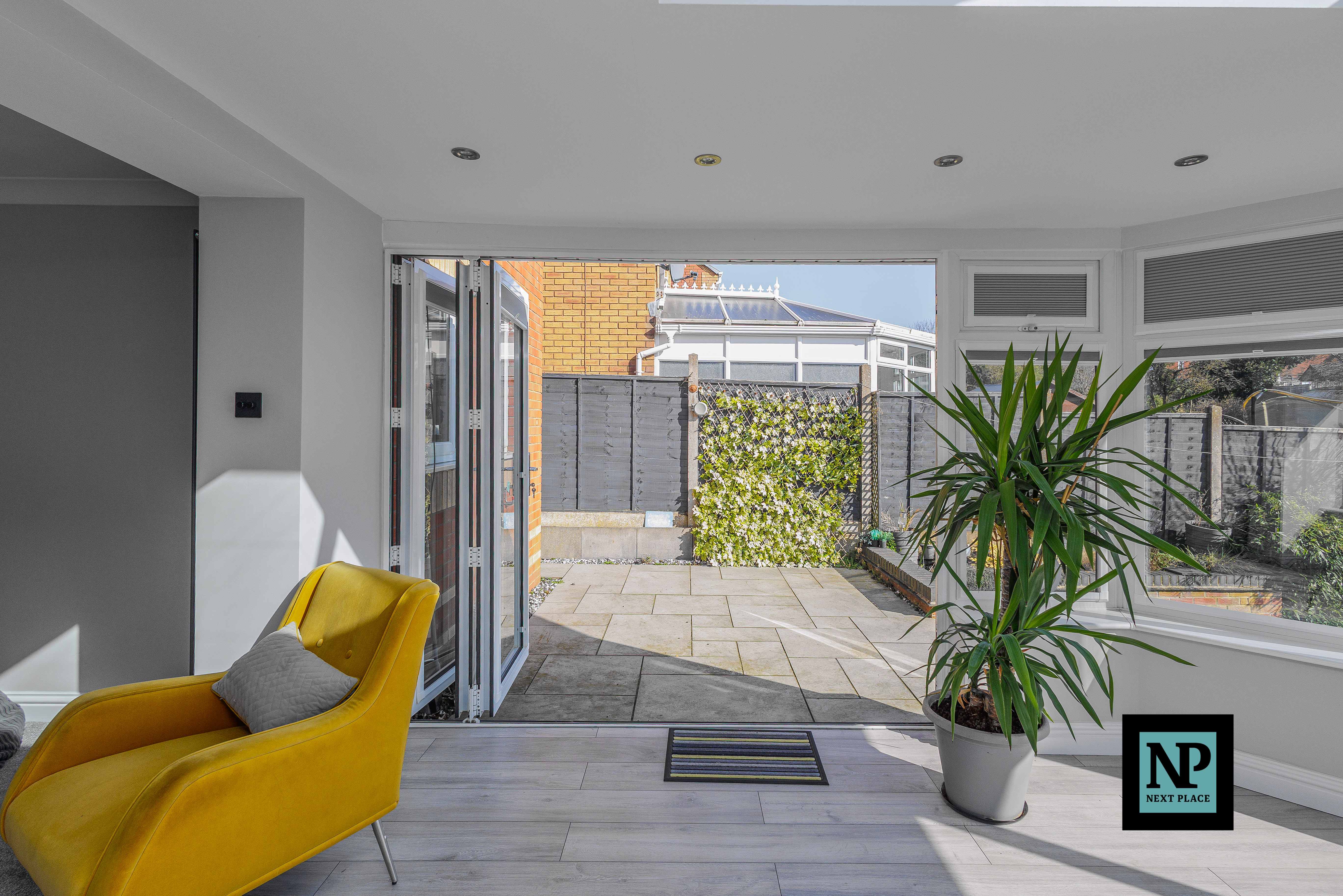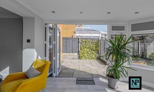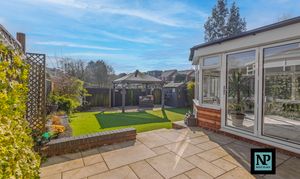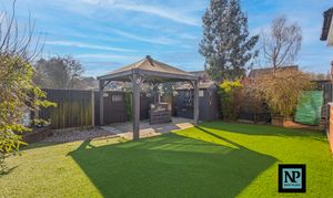 Head outside where the property continues to impress. Step onto the patio area via the bi-fold glazed doors to overlook the meticulously arranged rear garden. A artifical lawn is surrounded with colourful raised borders of trees, plants and shrubs, creating a vibrant and peaceful ambience. A pergola and storage shed are added touches This outdoor paradise offers endless opportunities for relaxation and recreation, making it perfect for hosting gatherings.