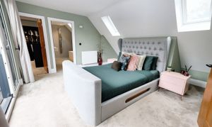 As you step inside, you are greeted by a spacious family lounge flooded with natural light through the floor to ceiling windows, and complete with a cosy log burner, and a separate formal dining space, perfect for entertaining guests or enjoying family meals. The heart of this home lies in the stunning fitted kitchen, featuring ample storage, a central island, and bi-folding doors that offer the seamless flow of indoor outdoor living.