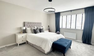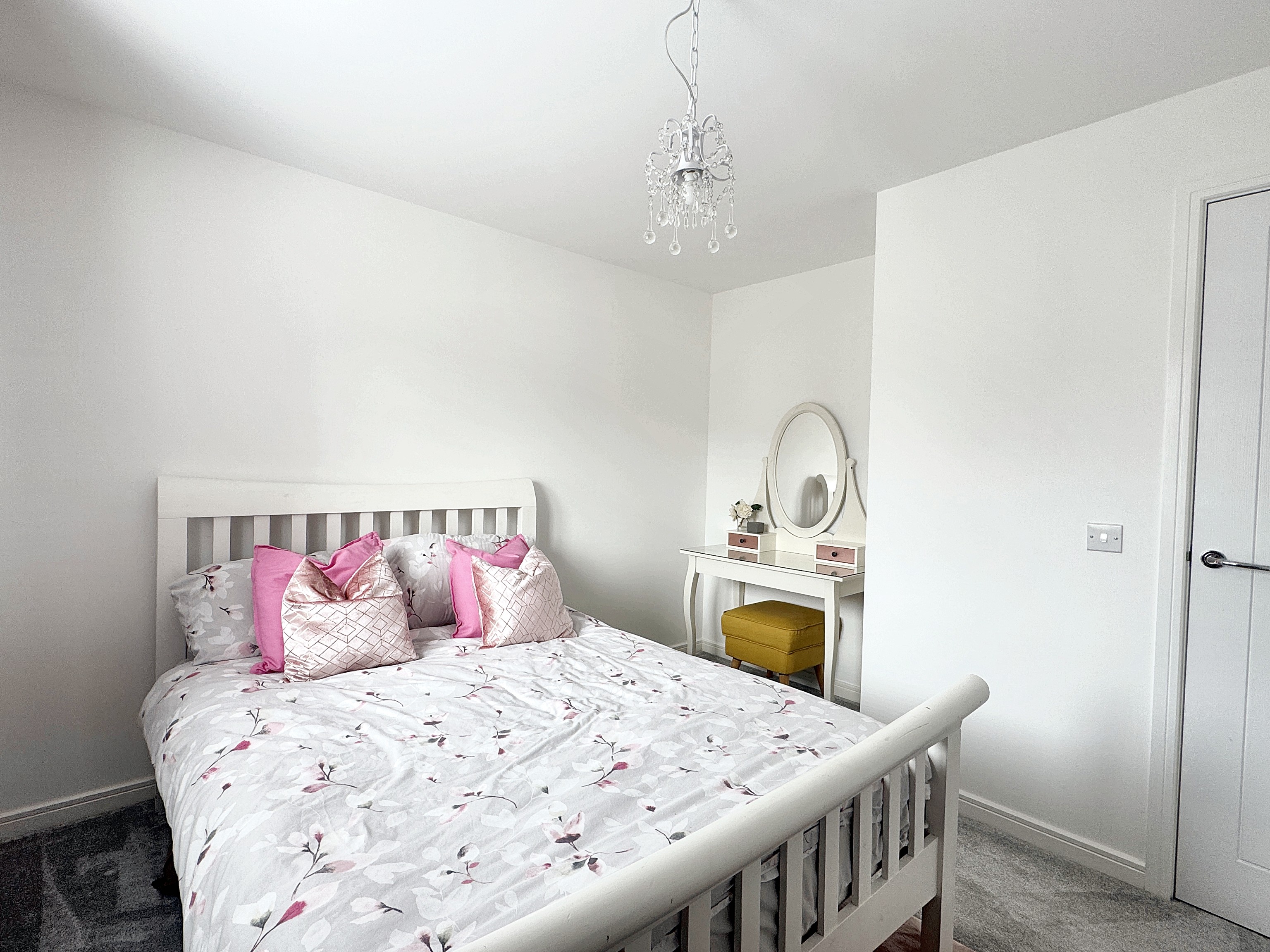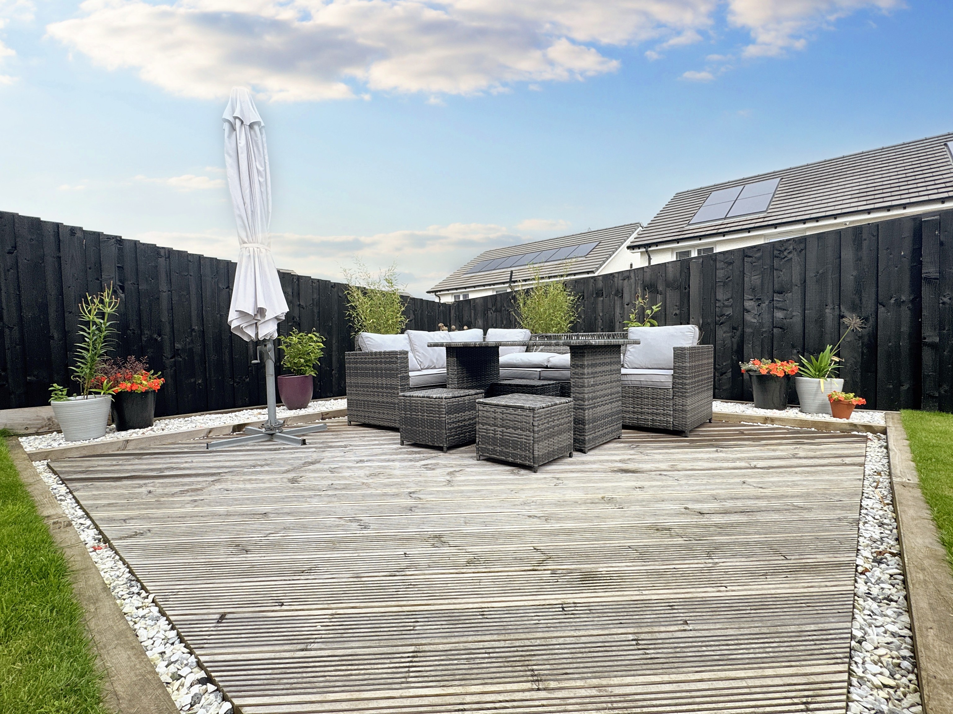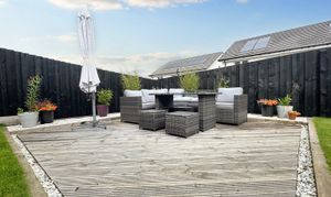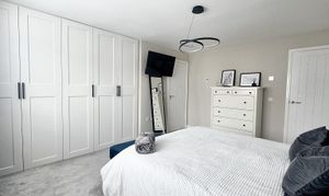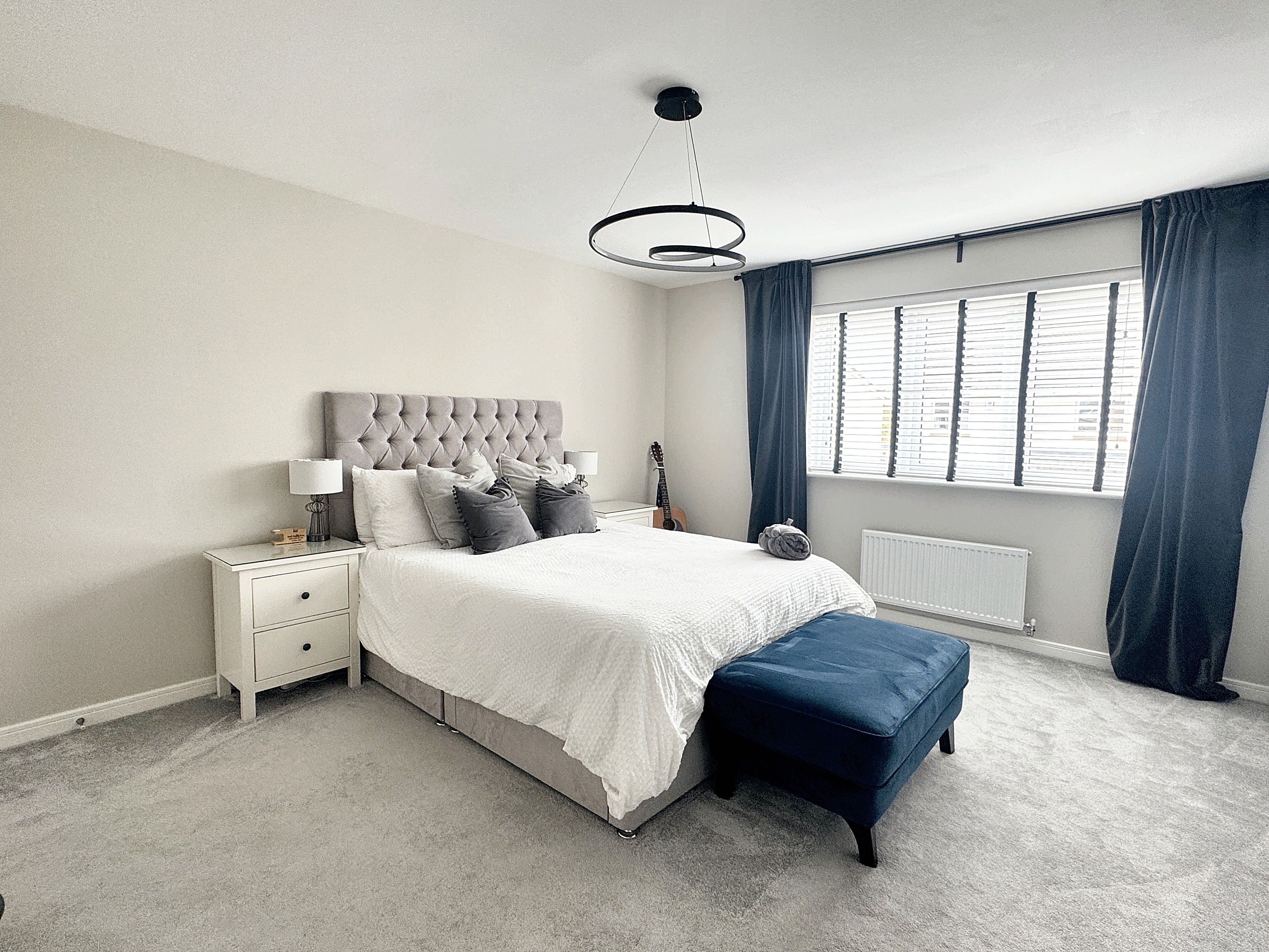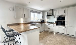 Upon entering, guests are greeted by the allure of luxury vinyl tiling in a chic herringbone pattern that flows seamlessly through the ground floor. The heart of the home, a generously sized kitchen diner, has been tastefully upgraded with integrated appliances that include shaker units adorned with LED lighting, AEG appliances such as a 5-burner gas hob, cooker hood, double oven, washing machine, fridge freezer and dishwasher. French doors lead out to the rear garden which has been thoughtfully landscaped, featuring two inviting decking areas that set the stage for al fresco dining and relaxation and a shed for additional storage. Further exploring the property reveals a convenient utility room, ensuring practicality in day-to-day living, along with a well-appointed downstairs WC.