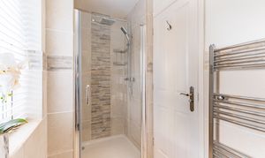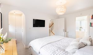 Upstairs, the first floor features a spacious second reception room, a versatile area ideal for a family room, a children’s playroom, a snug, or an additional bedroom. Another WC can be found on the landing, adding further convenience. The principal bedroom is a generous double with a dedicated dressing room complete with fitted wardrobes, as well as an en-suite shower room, creating a comfortable and private retreat.