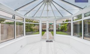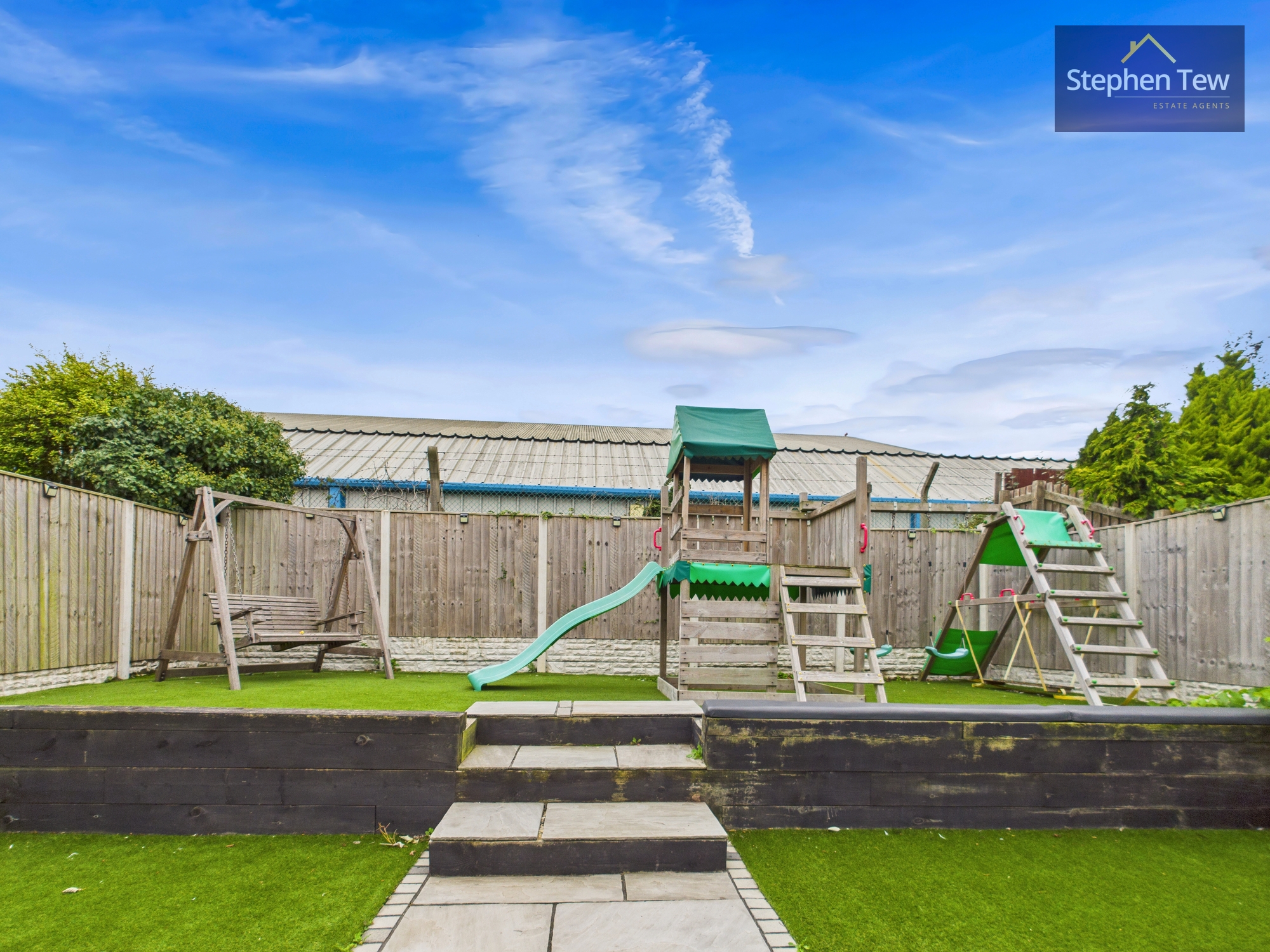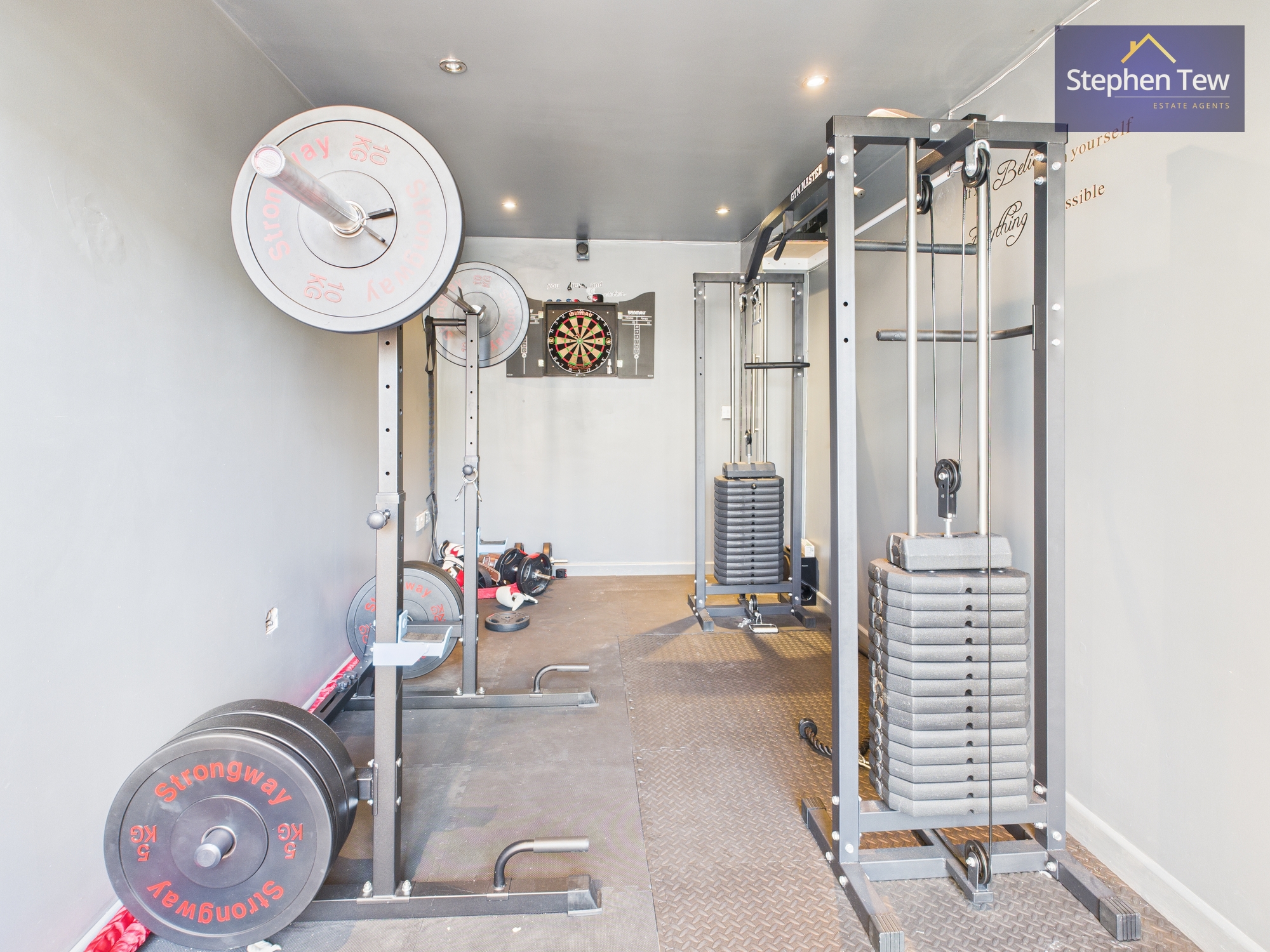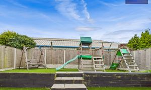 The low maintenance split-level garden at the rear includes a children's play area, perfect for outdoor enjoyment. The Garage has been expertly converted into a Gym, catering to an active lifestyle. With a large Driveway, convenience is assured for multiple vehicles.