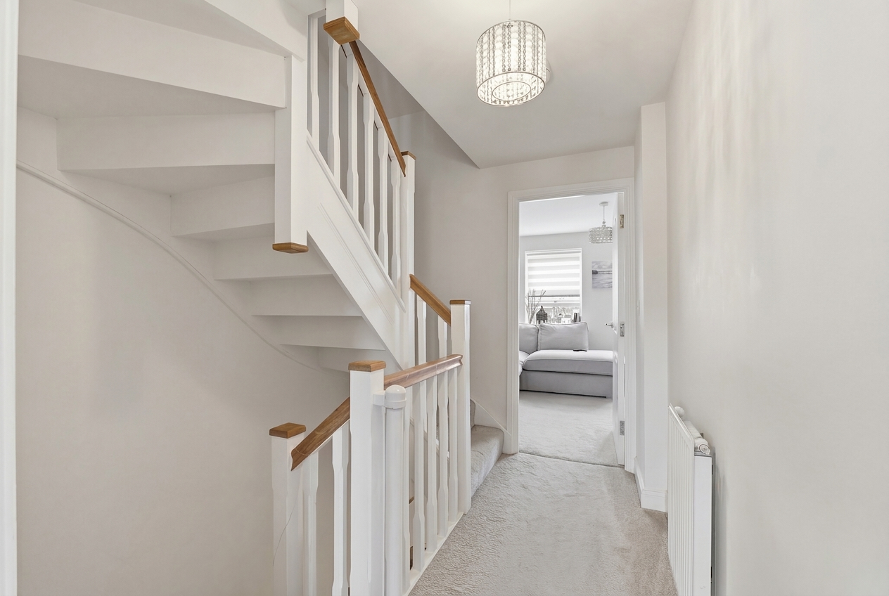 This beautifully presented four-bedroom, two-bathroom semi-detached house offers contemporary, flexible family living across three spacious storeys. With a modern brick exterior and immaculate kerb appeal, the property boasts off-road parking for multiple vehicles on a neatly maintained driveway. The home’s elegant design is matched by its practical layout, making it an ideal choice for families looking for comfortable, versatile spaces or professionals seeking a stylish retreat with excellent work-from-home potential. The house is filled with natural light throughout, enhancing the bright and welcoming atmosphere from the moment you step into the inviting hallway, complete with stylish laminate flooring and a modern staircase.