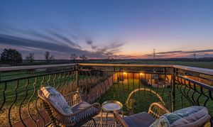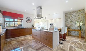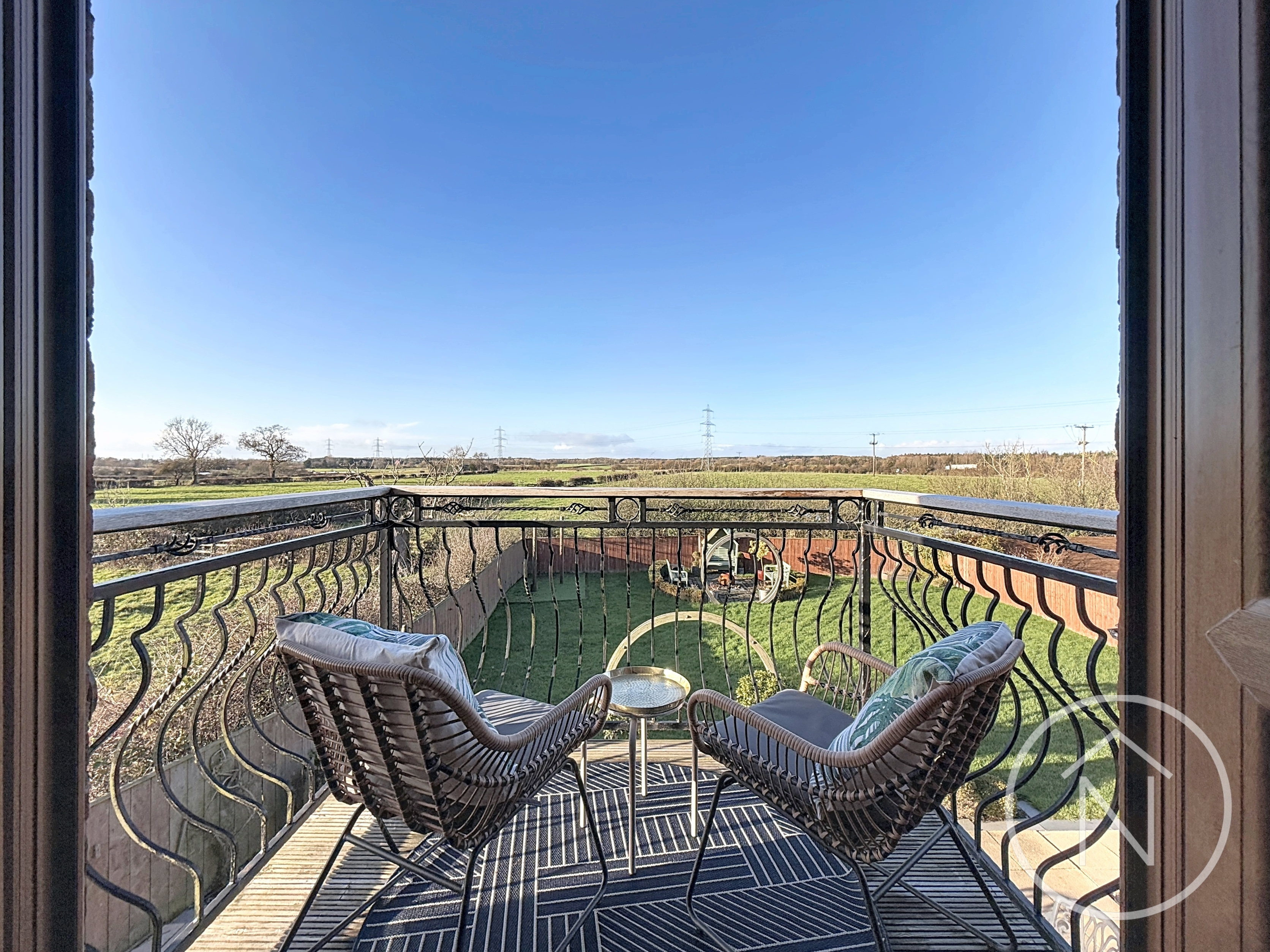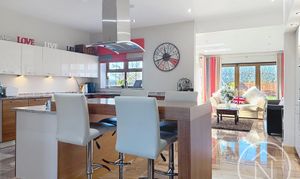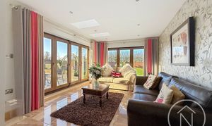 Every detail throughout the property has been designed with luxury and practicality in mind. The bedrooms are spacious and bright, boasting built-in wardrobes, feature walls, and private balcony access with scenic countryside views. The master suite benefits from an en-suite bathroom finished with contemporary fixtures. Bathrooms are meticulously appointed with walk-in showers, large bath-tubs, mosaic tile backsplashes, and panoramic windows enjoying the views to the rear. Versatile spaces, including a light-filled home gym, offer flexibility for work, fitness, or relaxation. The property’s exterior is equally impressive, featuring a modern brick façade, double garage, ample off-road parking, and a private driveway accommodating multiple vehicles. The beautifully landscaped gardens include a large lawn, decorative hedges, and various seating and dining areas - perfect for entertaining or quiet reflection. Additional high-value features include skylights, modern fireplaces, sophisticated lighting fixtures, and open-plan dining areas with direct garden access. With its harmonious blend of contemporary luxury, abundant space, and exceptional indoor-outdoor living, this remarkable detached home offers an unrivalled opportunity for families seeking privacy, comfort, and style in a truly premium setting.