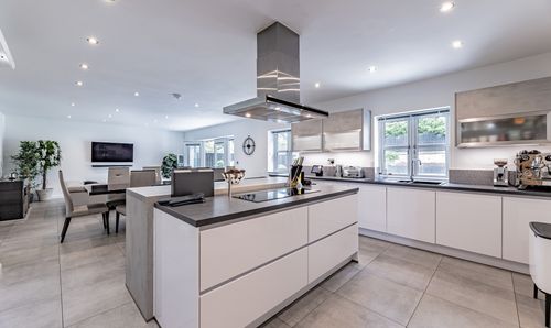 The open-plan space is the heart of the home. Families will congregate here, and socialising is made easy. A roof lantern allows sunshine to flood the space, and bi-folds and French doors bring the outdoors in, as well as give great vantage points from which to watch the wandering wildlife.