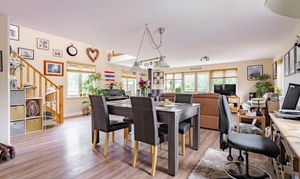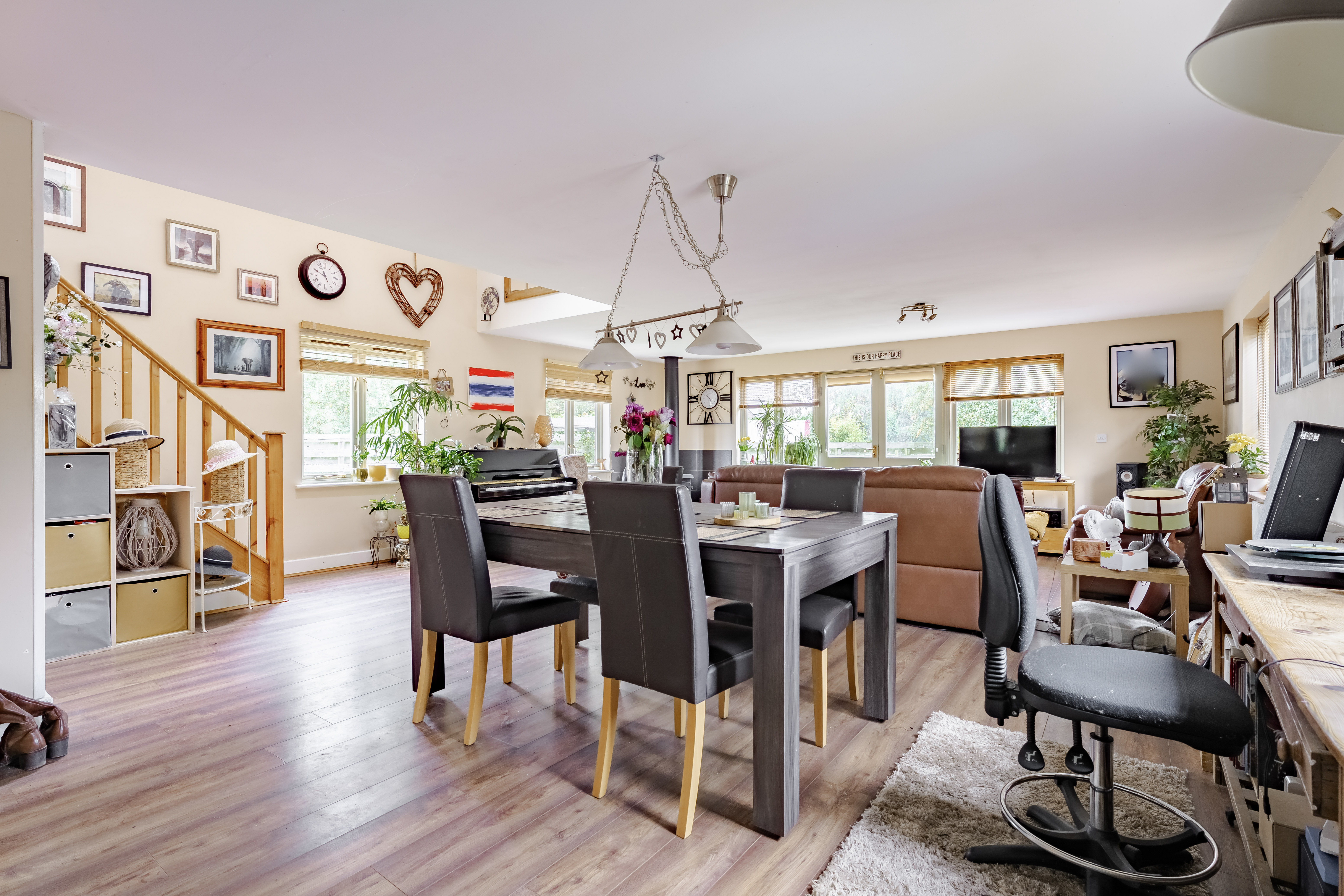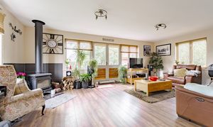 - Spacious open-plan lounge and dining area with feature log burner