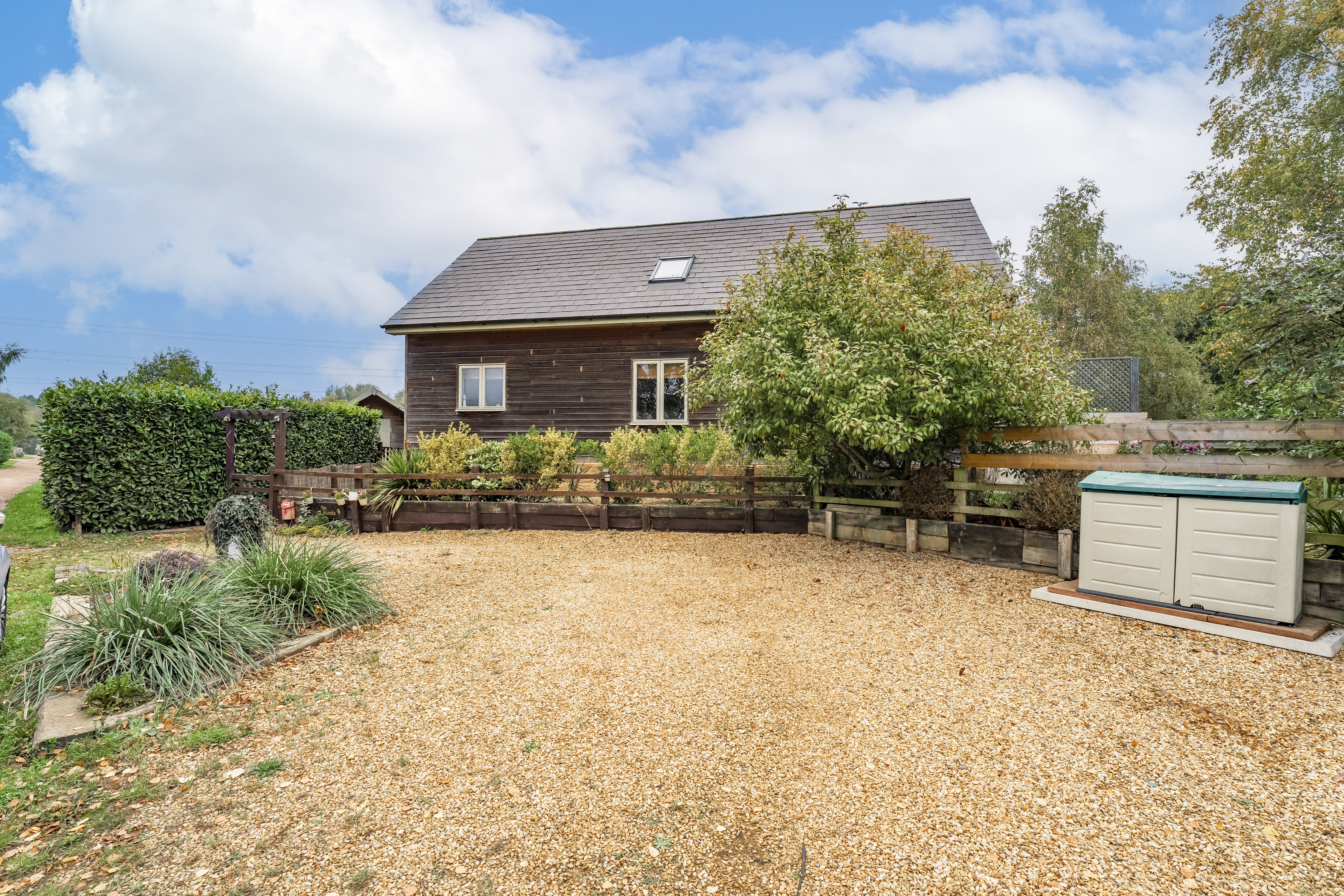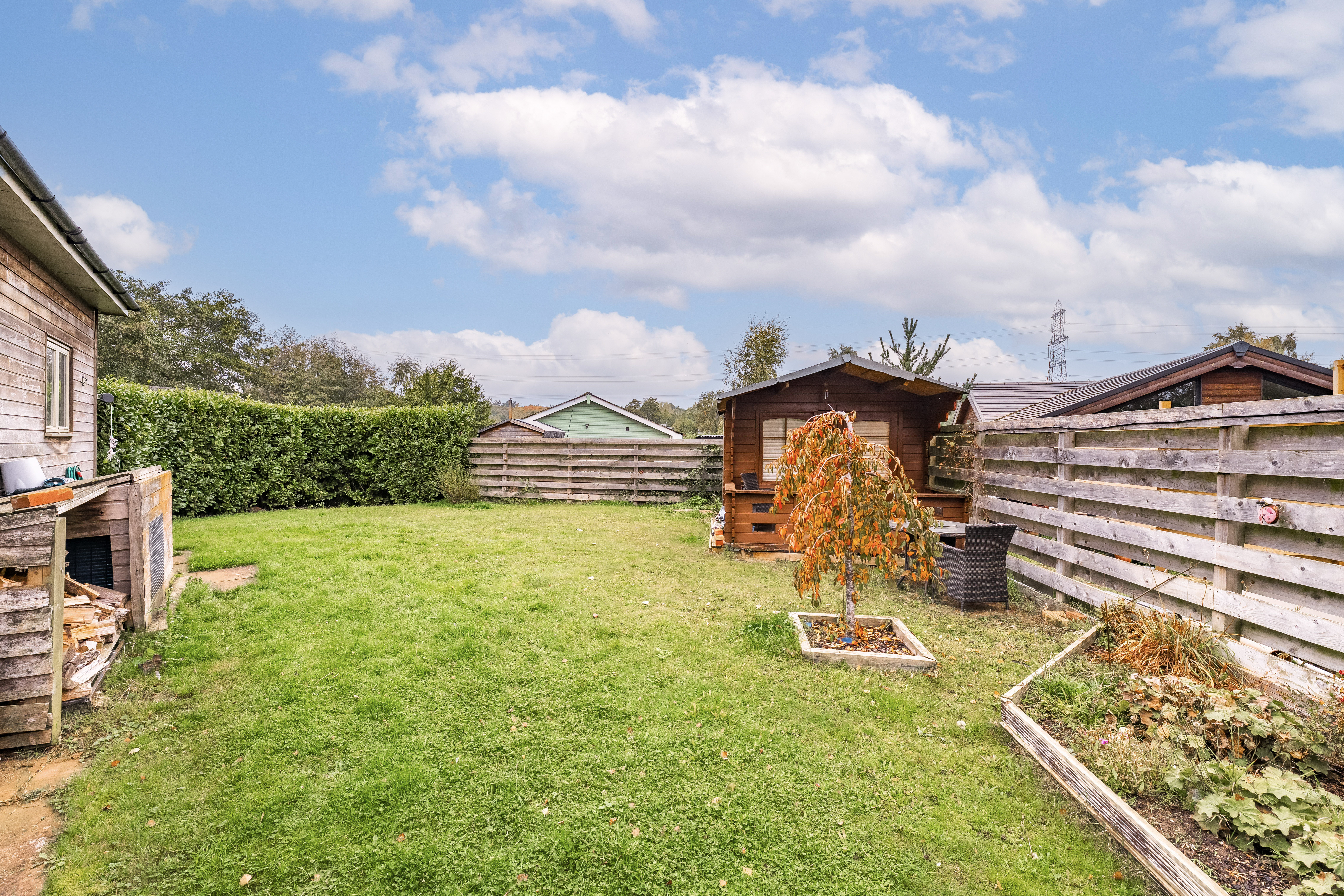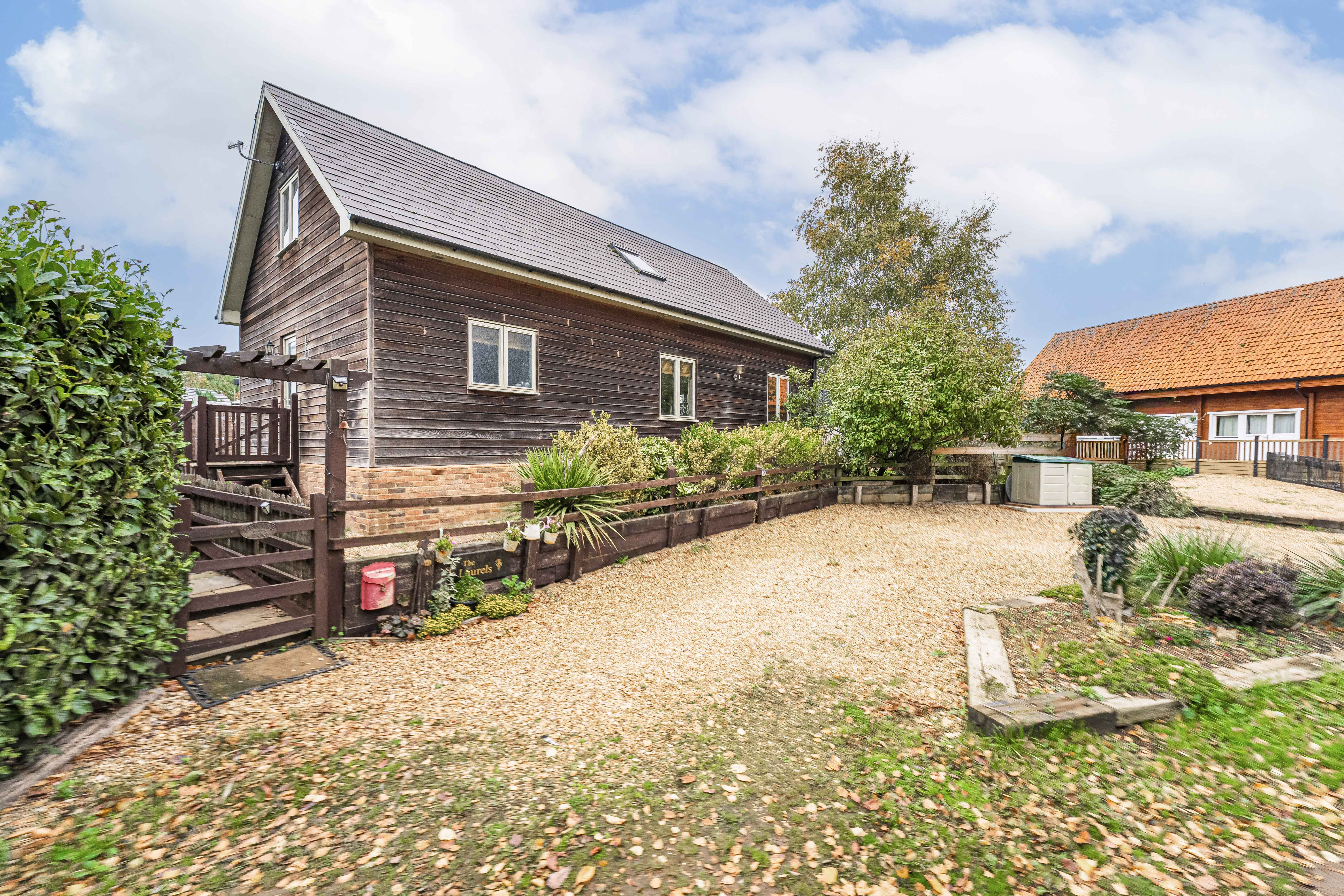 Outside, the property continues to impress with ample parking for several vehicles and a spacious, enclosed garden that wraps beautifully around the lodge, perfect for outdoor dining, gardening, or simply enjoying the peaceful surroundings.