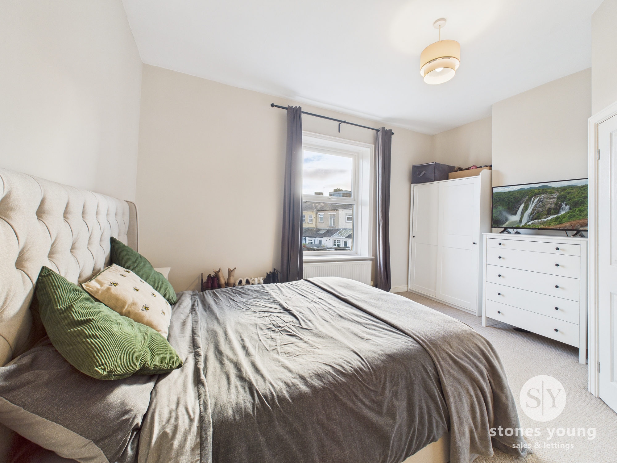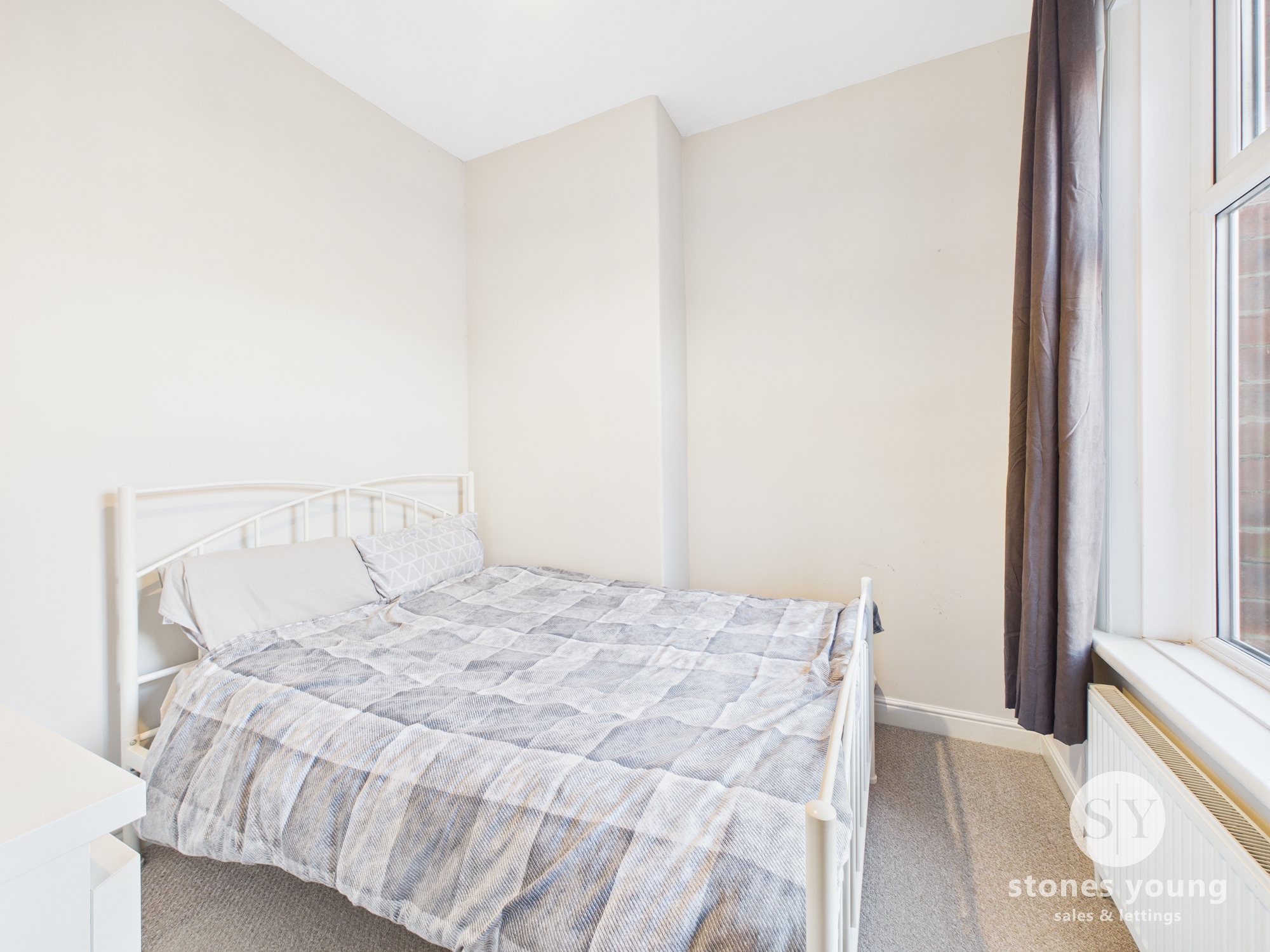 Carpet flooring, uPVC double glazed window, curtains and curtain pole, panel radiator, TV point.