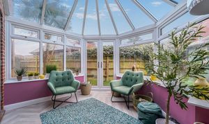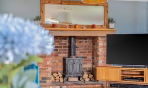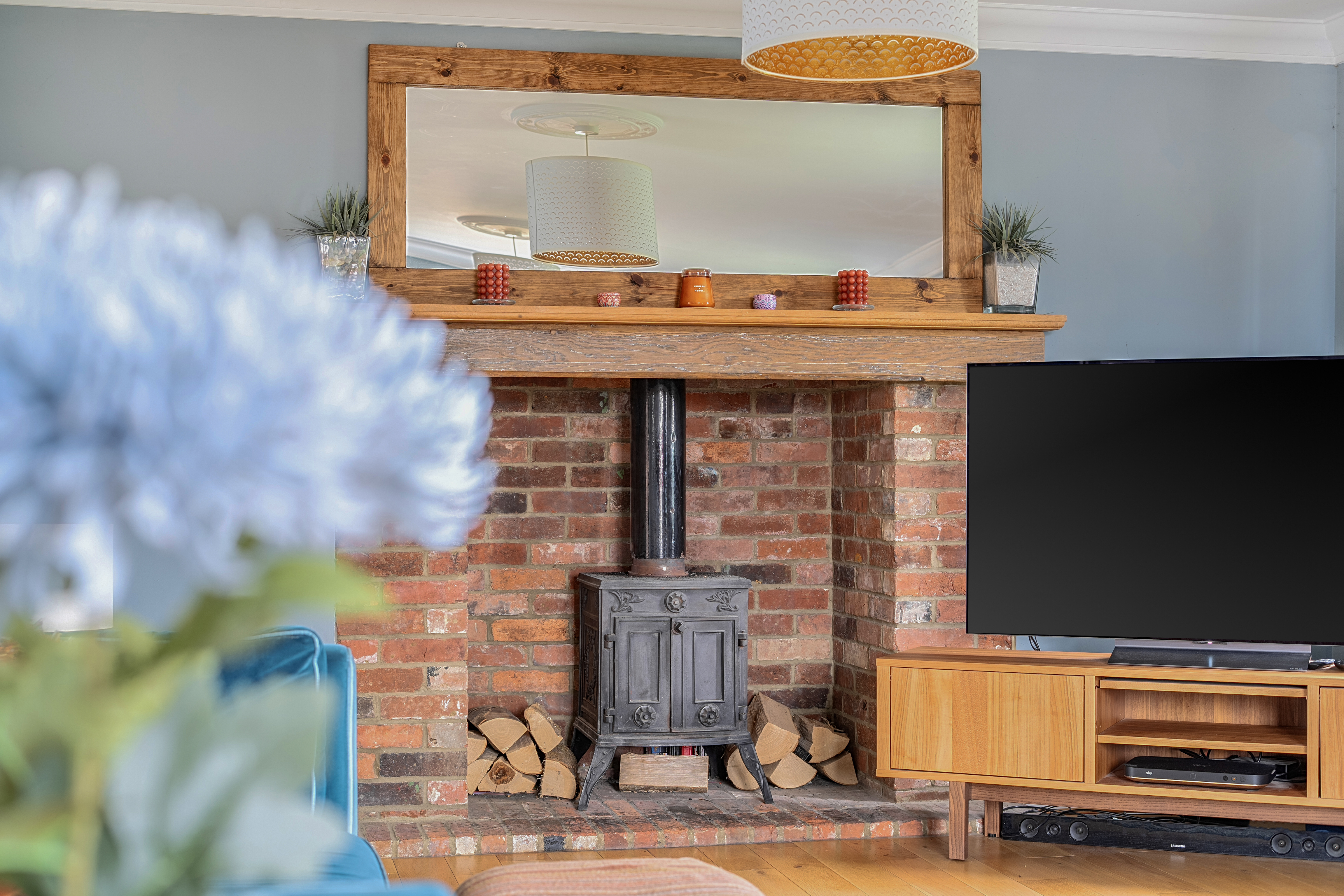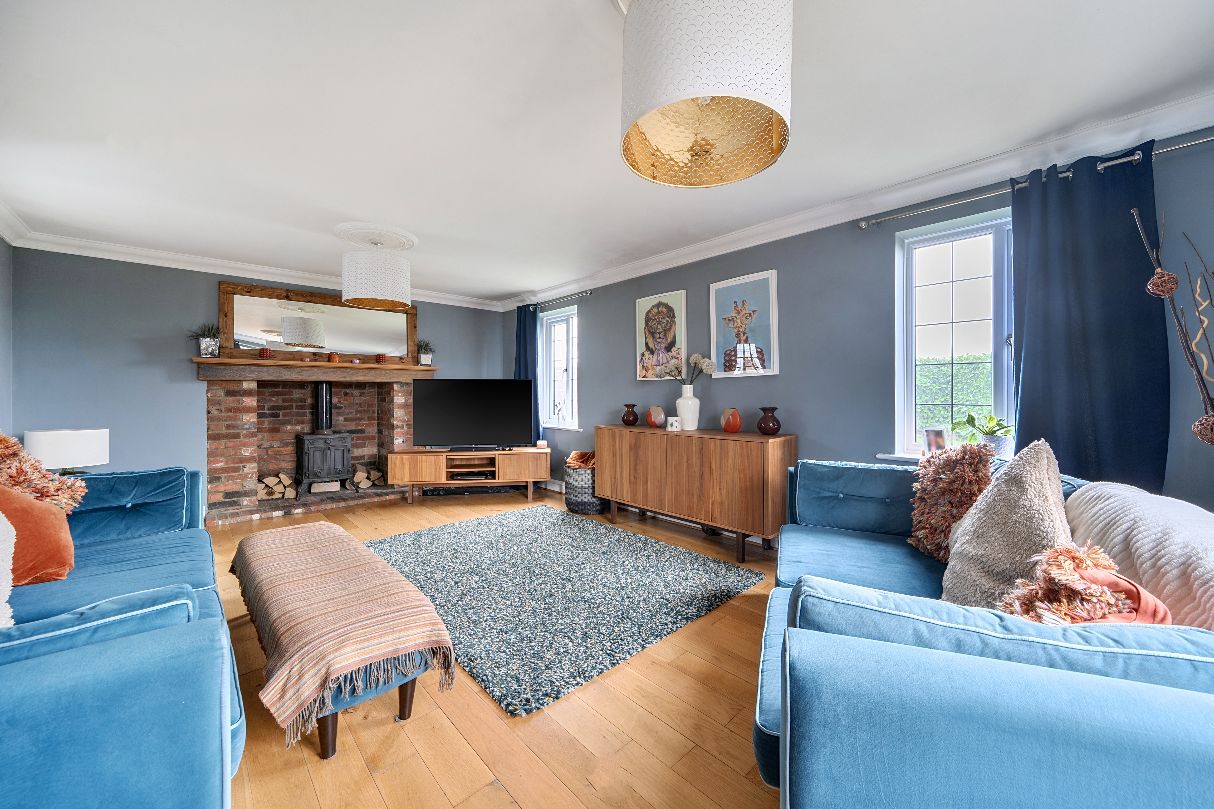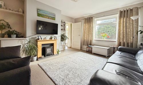 Dual aspect with two double glazed windows to side, one double glazed window to front, laminate flooring, a feature cast iron wood burner set within a traditional brick fireplace, radiator. Door to conservatory.