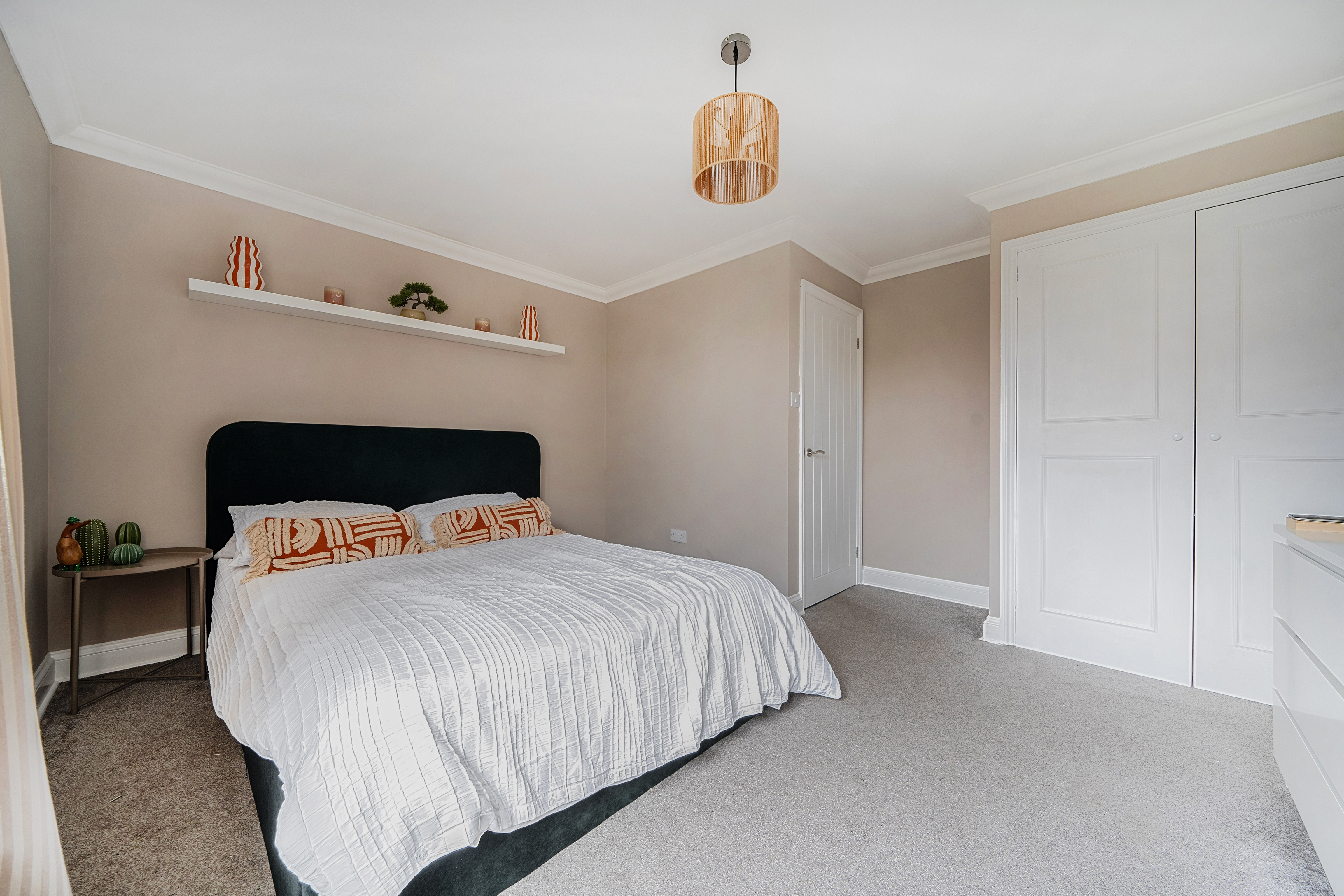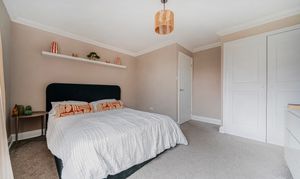 Carpeted, double glazed window to rear, wardrobe with hanging rail and shelving, radiator.