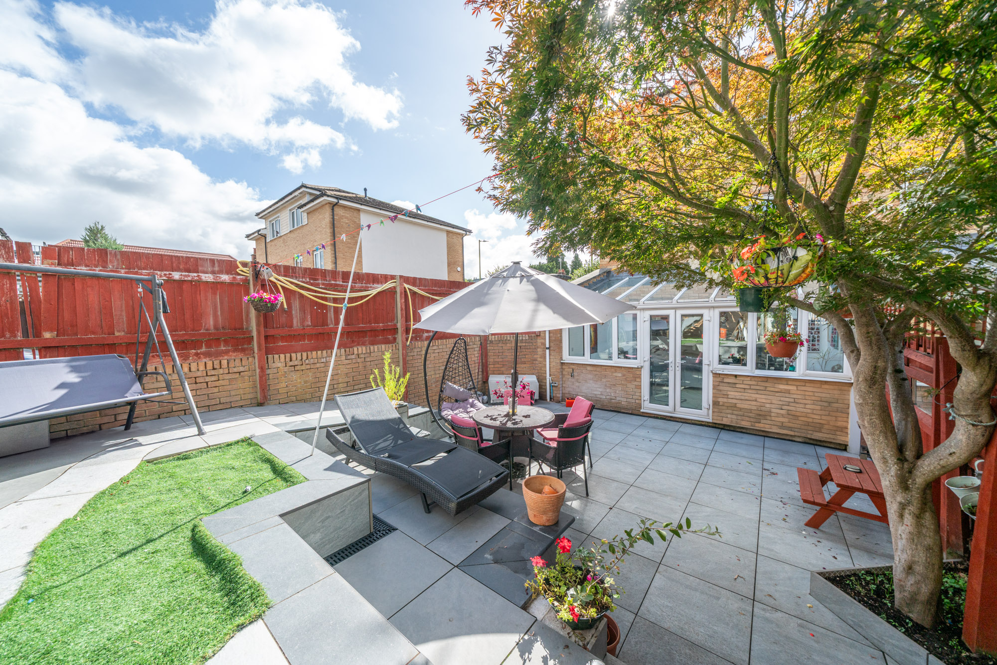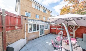 An exceptional four-bedroom semi-detached townhouse arranged over three floors. The property boasts a spacious living area and a conservatory to the rear, opening onto a beautifully landscaped garden, perfect for relaxing or entertaining. At the front, a modern kitchen complements the welcoming entrance hall and convenient downstairs WC.