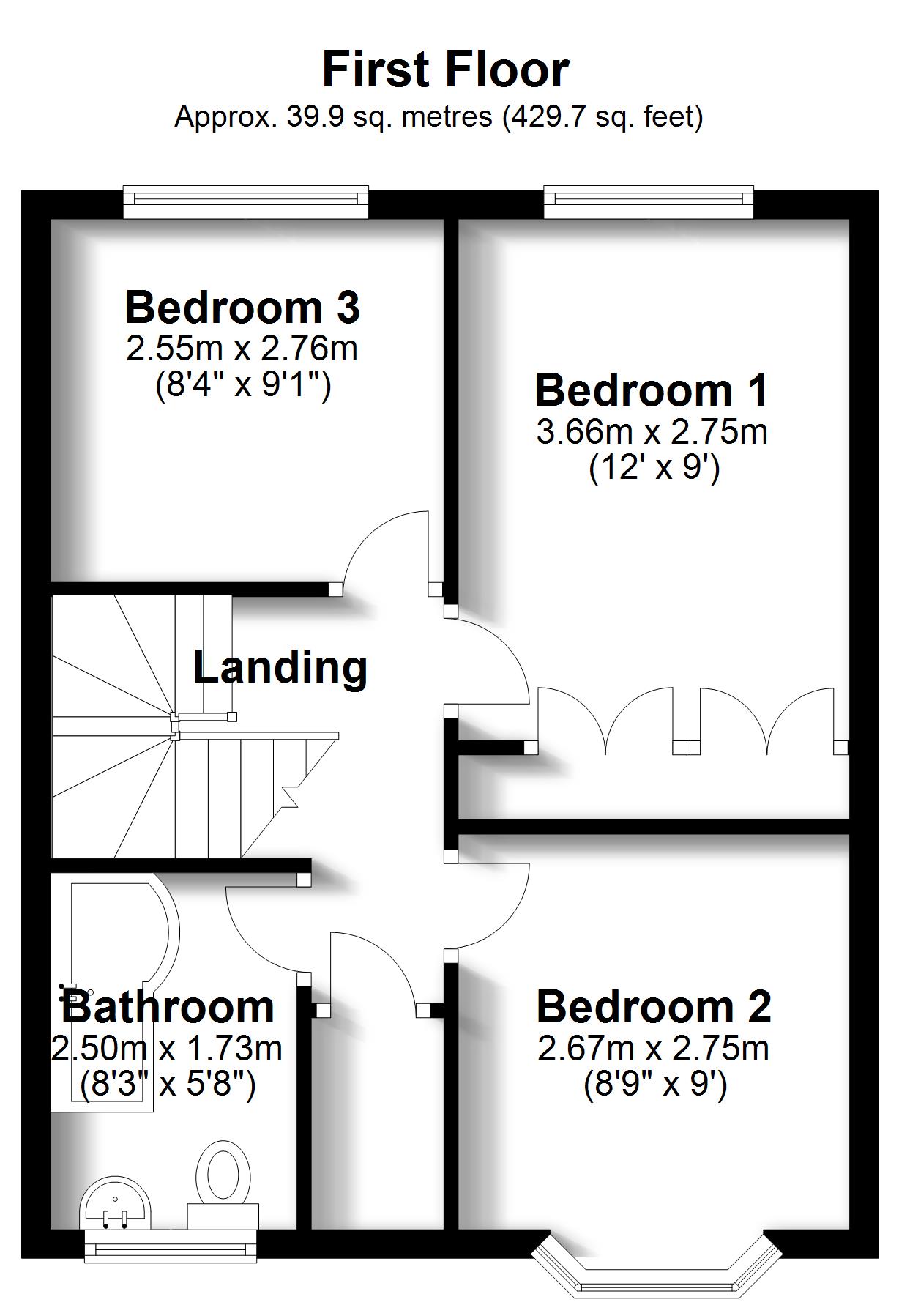 Bedroom Three 2.76m (9'1") x 2.55m (8'4")