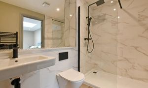 Both double bedrooms provide comfortable, well-furnished spaces, with the main bedroom also offering a dedicated study area. The luxury bathroom is fully tiled in marble, creating a sleek and contemporary feel. Smart technology, including app-controlled heating and dimmer lighting, adds further convenience. With high-speed Wi-Fi included and the option to rent directly from a trusted local landlord, this apartment delivers a premium city living experience in the heart of Sheffield.