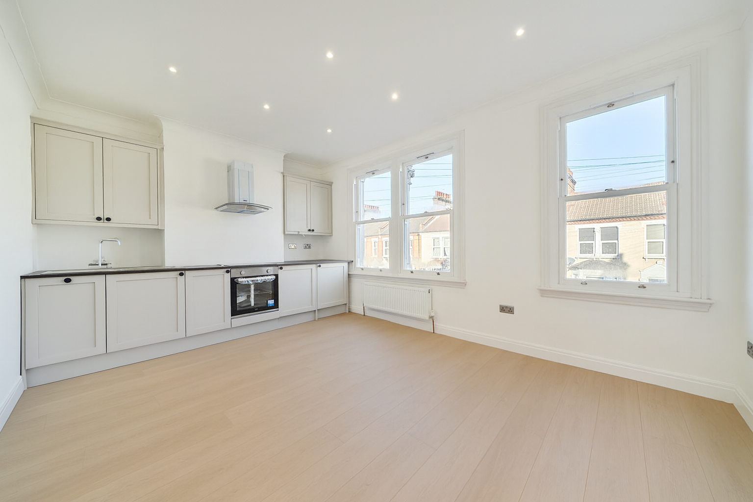 Presenting this stunning, newly refurbished two-bedroom top-floor flat set within a charming period conversion. Finished to a high contemporary standard throughout, the property offers a spacious open-plan kitchen and reception room, ideal for modern living.