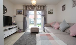Well presented kitchen which is open to the living room. Continuation of the vinyl floor. A good range of modern eye level and base units with complementing work surfaces and inset sink unit. Concealed combi boiler. Inset hob with oven under. Breakfast bar area and then open to lounge with door off to WC. Lounge has two radiators and uPVC double opening doors to rear garden.