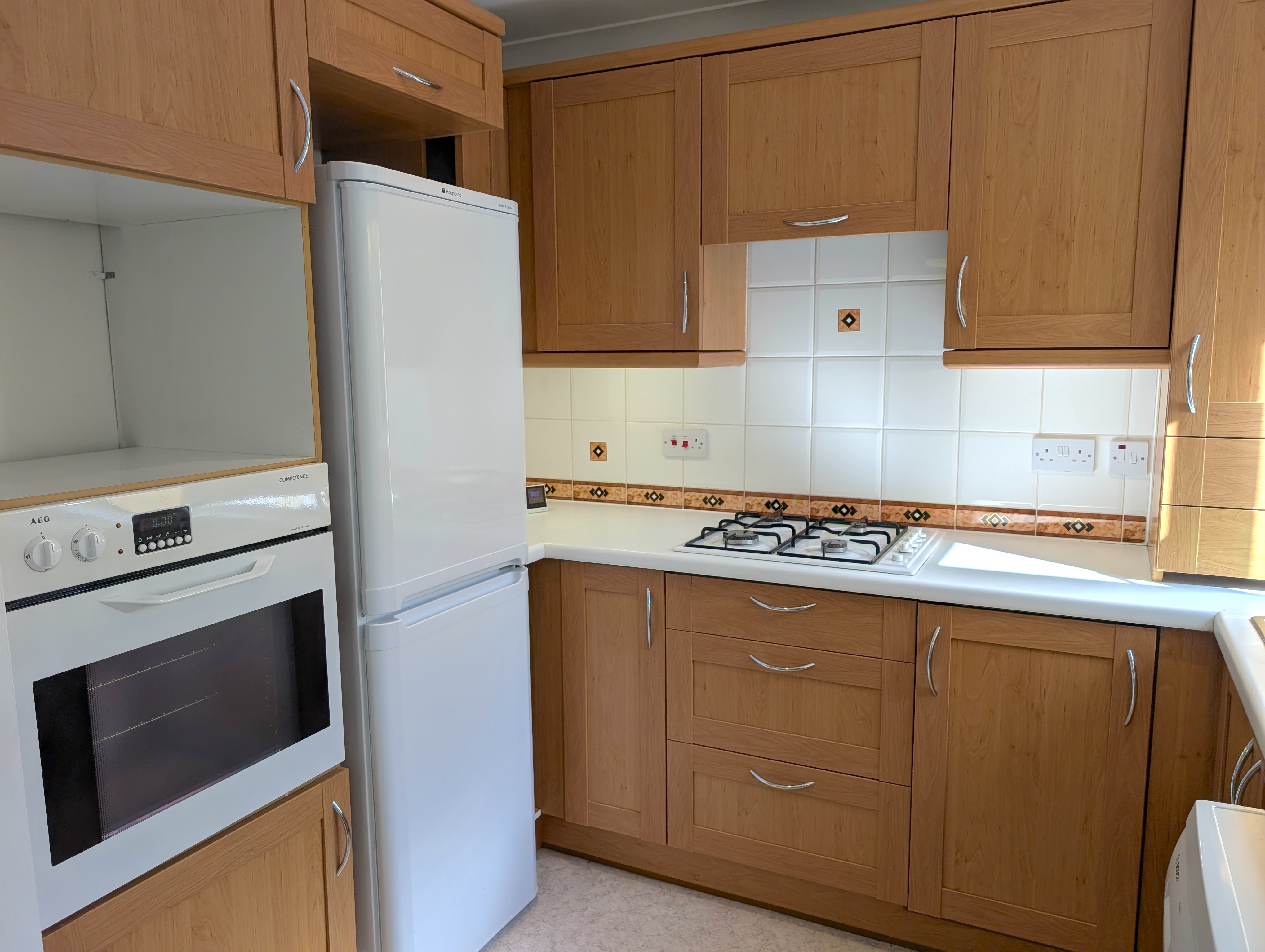 The home comes equipped with white goods including a fridge freezer, washing machine, oven, and hob.
