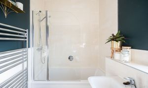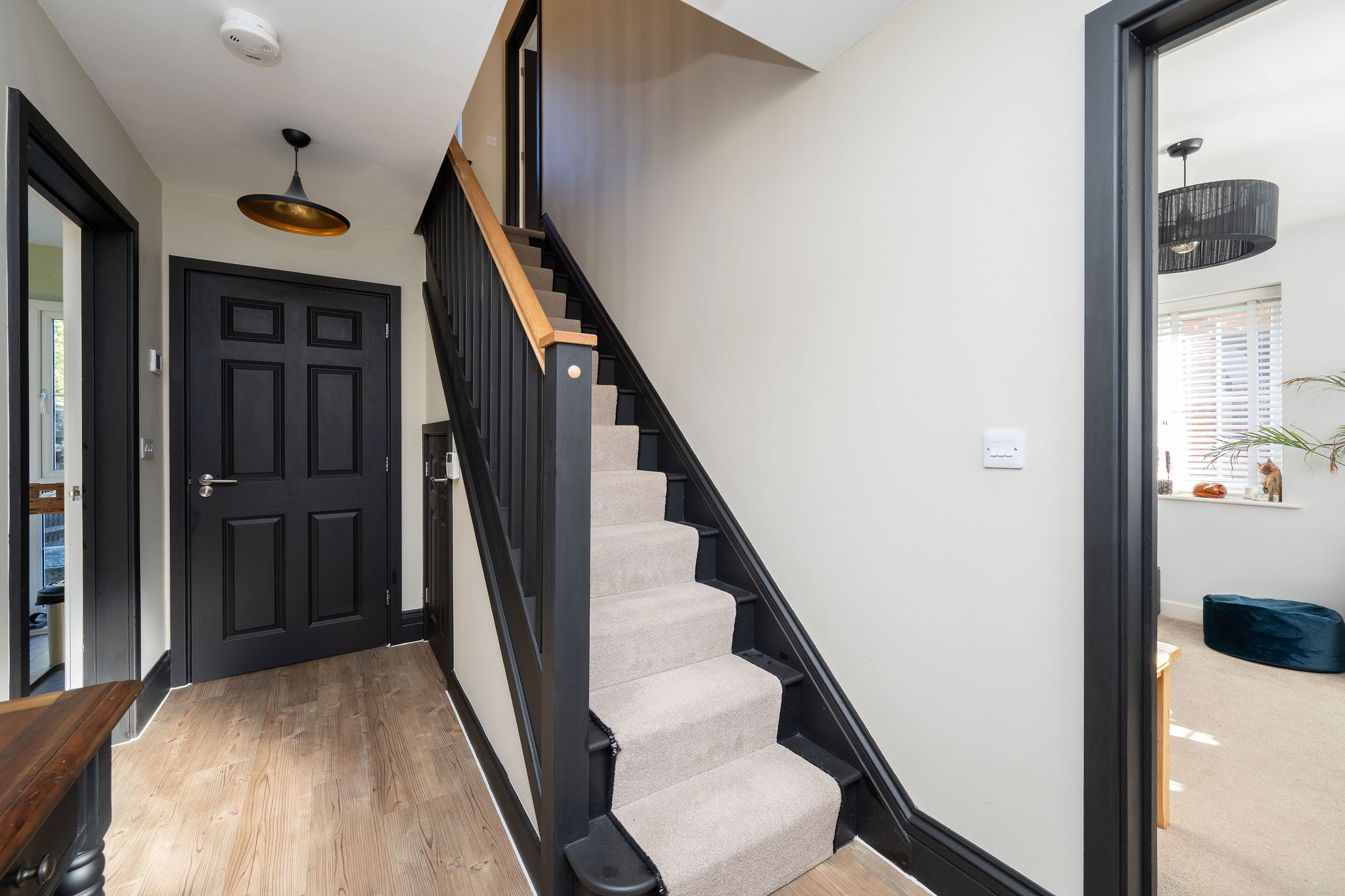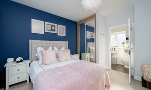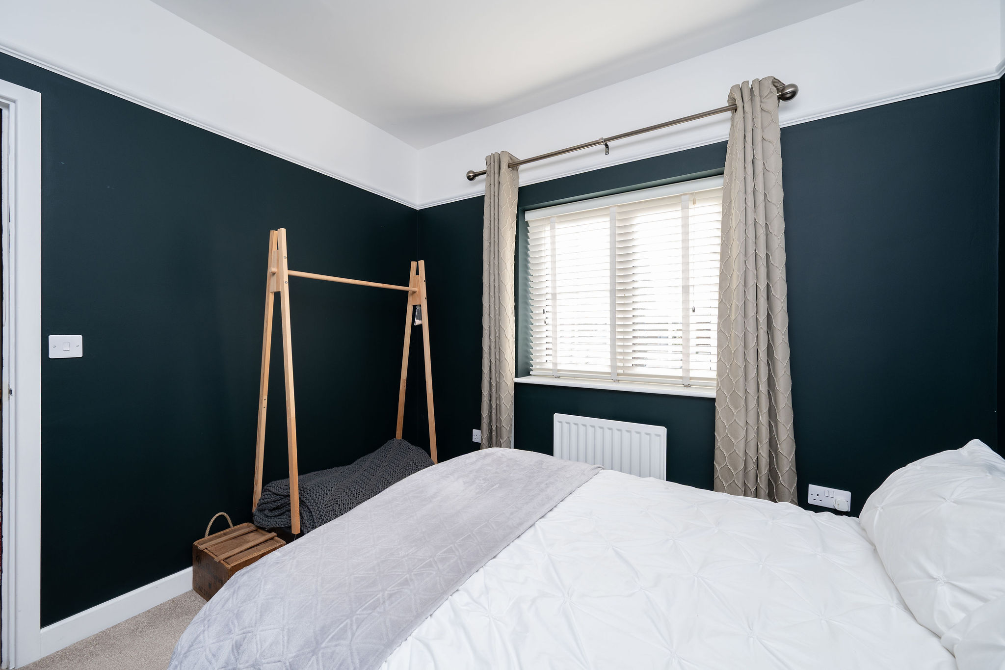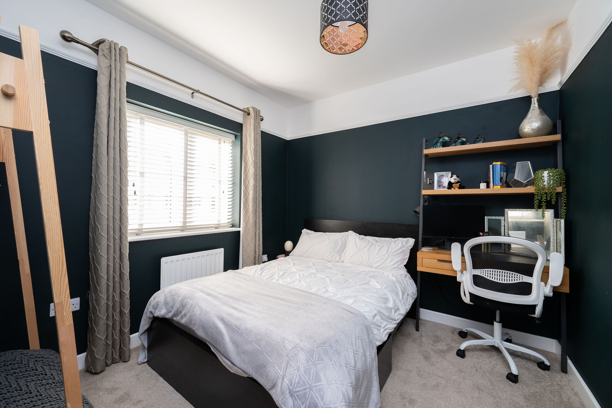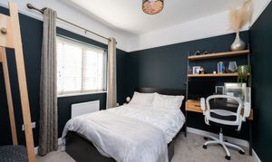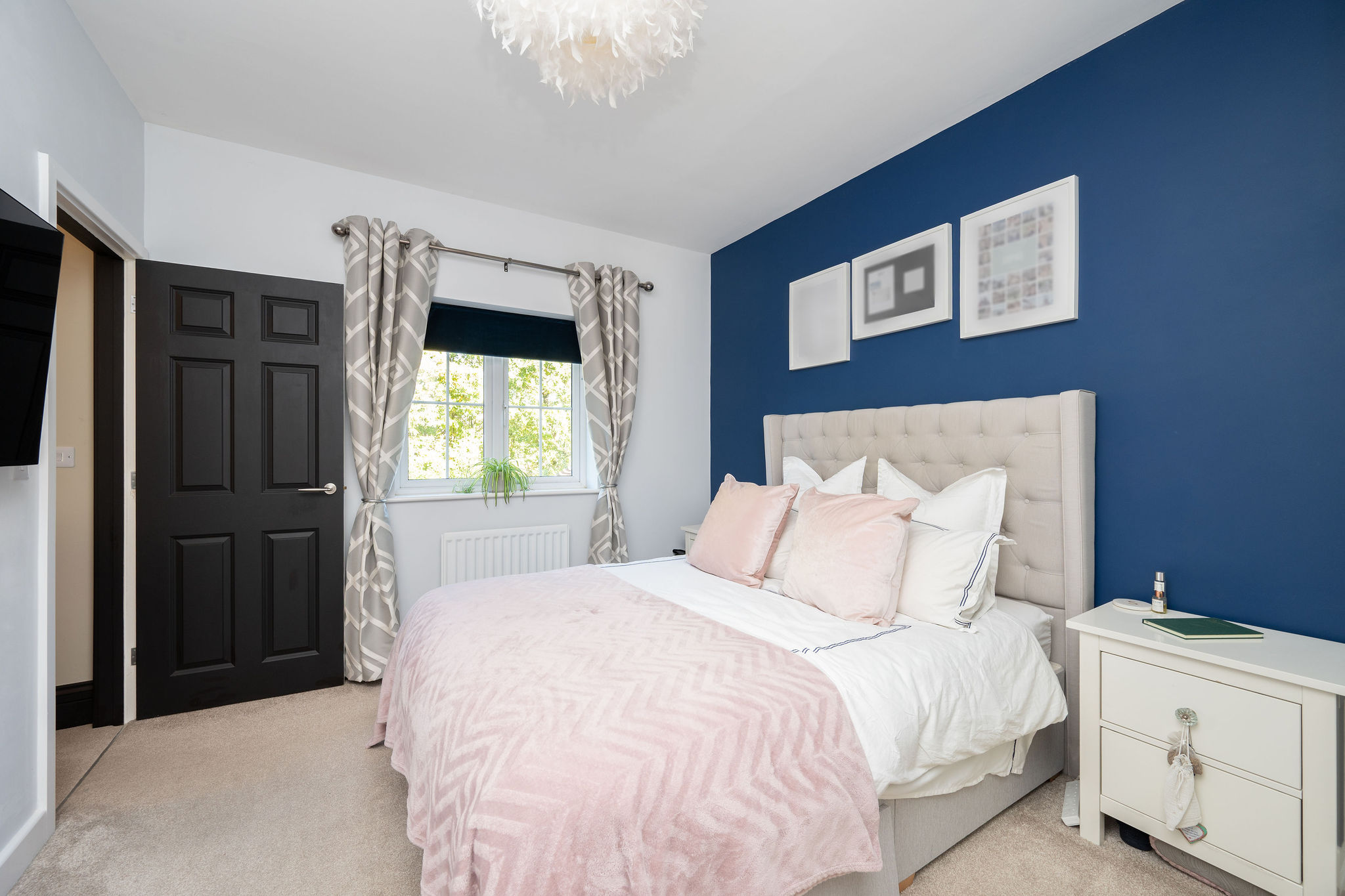 First FloorThe principal bedroom overlooks the rear garden and benefits from fitted wardrobes and a stylish en-suite shower room featuring a large walk-in shower, wash hand basin, and low-level WC, all finished with quality chrome fittings.