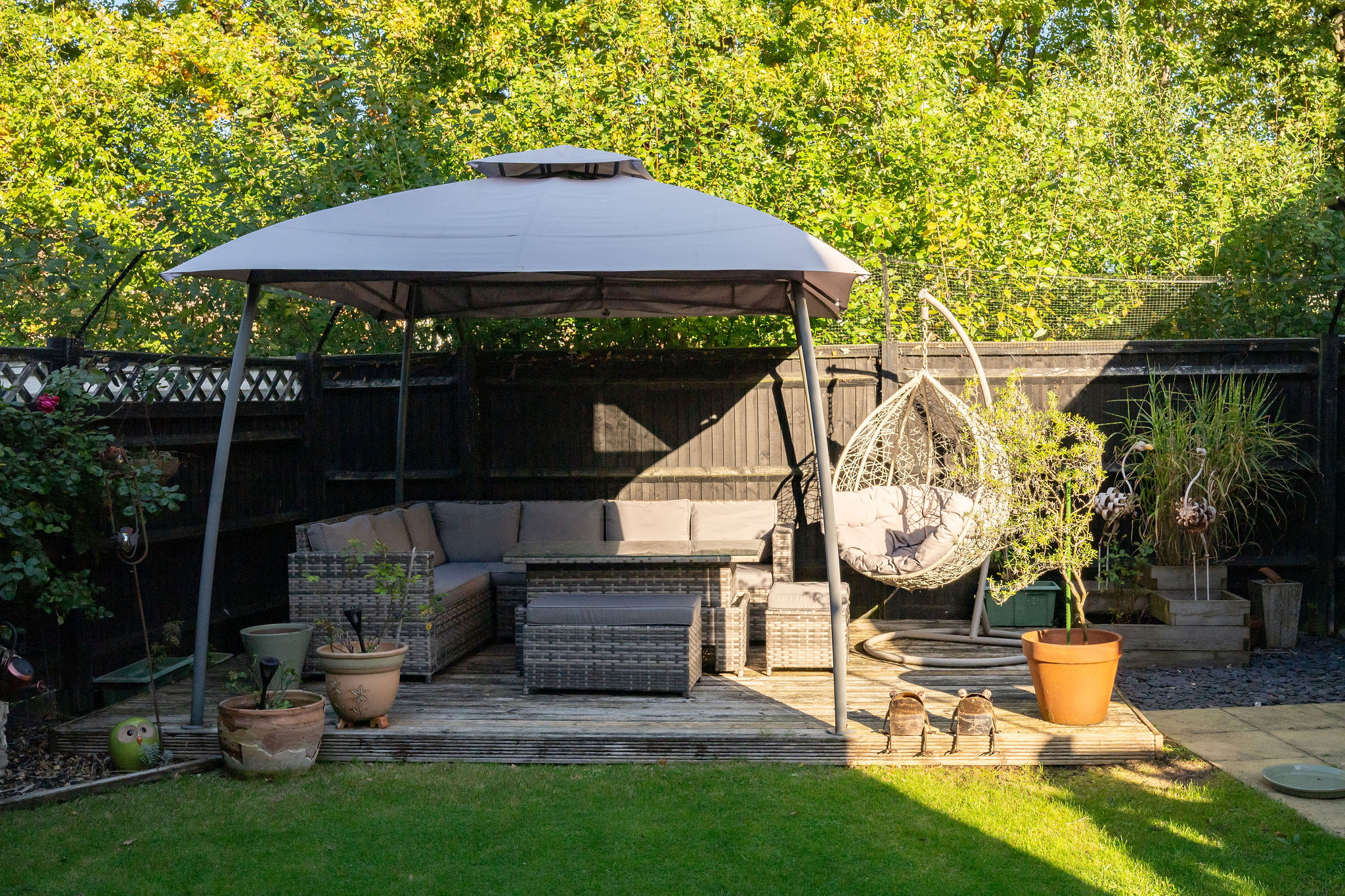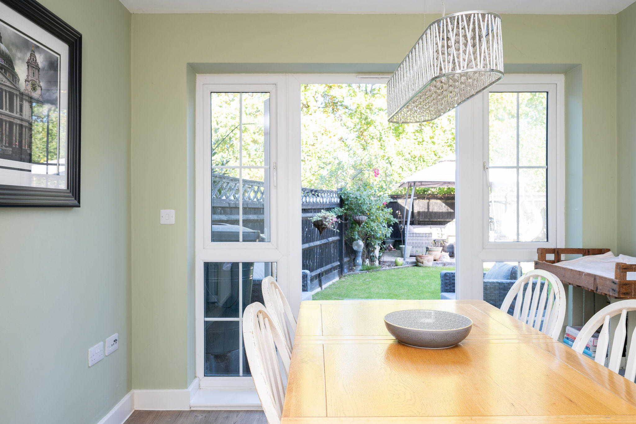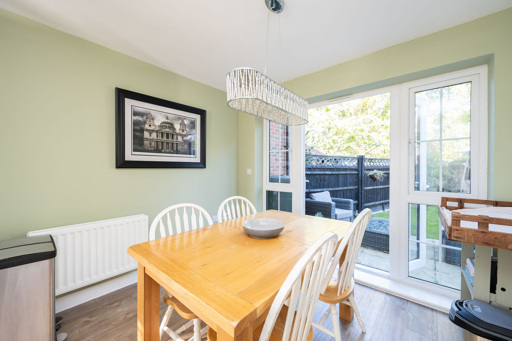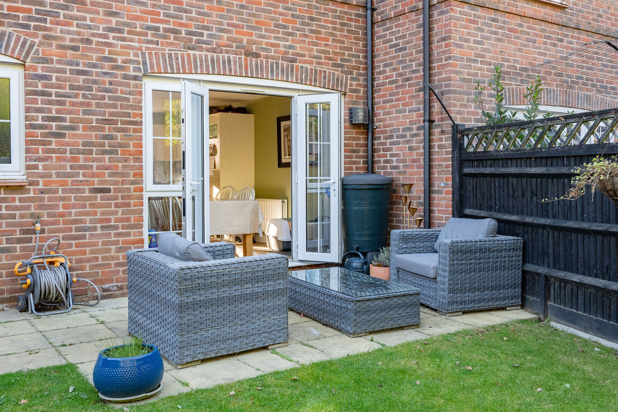 The rear garden is mainly laid to lawn and includes a timber decked terrace, perfect for outdoor dining and entertaining during the summer months. There is also a paved patio area, along with well-stocked shrub borders and a side gate providing direct access to the driveway.