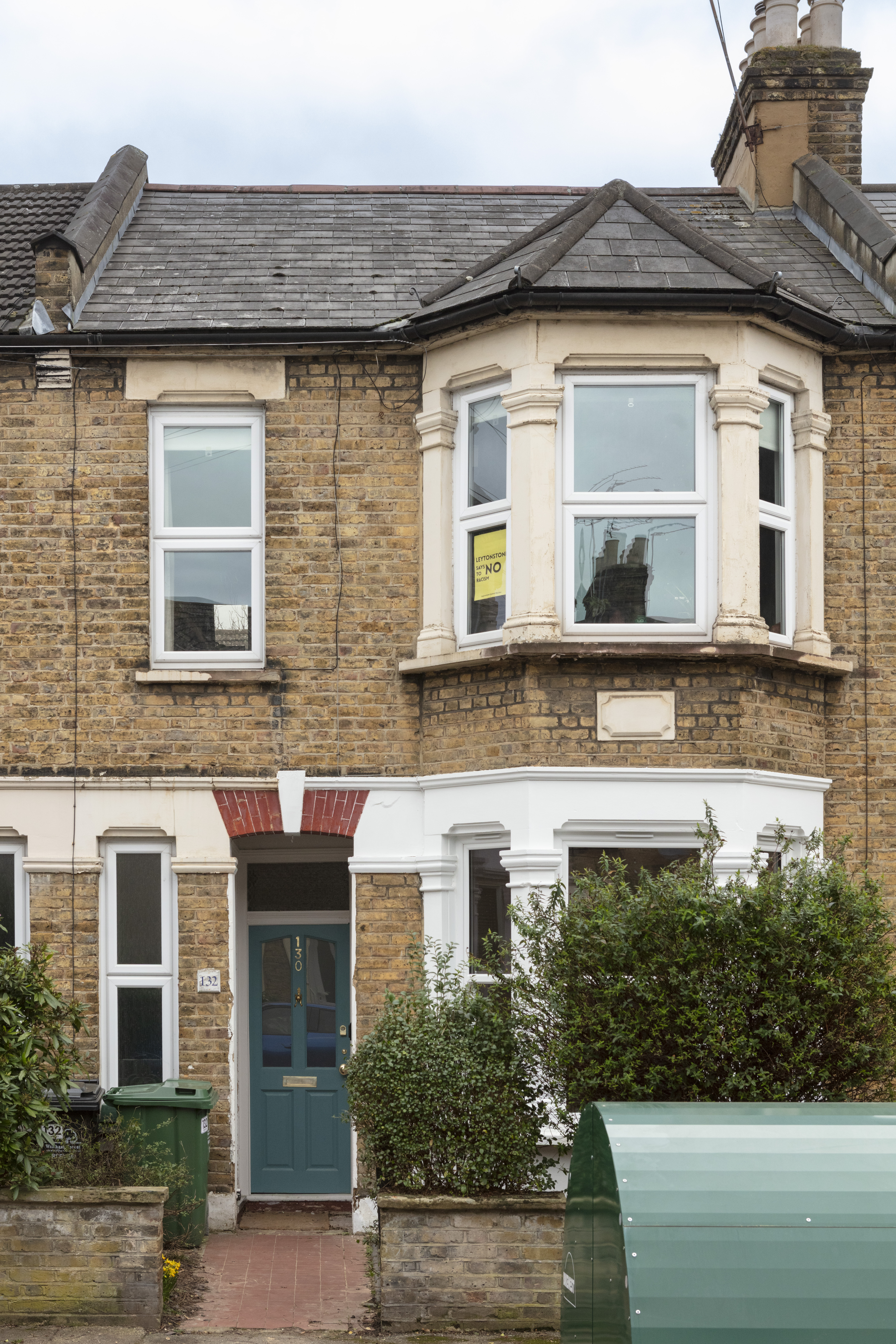 From the street, you’re met by a classic Victorian London Stock brick exterior, with a colonnaded bay window, sitting behind a low privet hedge-topped wall. A terracotta tiled path leads past a front garden to a recessed porch. The panelled, part-glazed front door has been painted a rich teal shade and features brass furniture, including a cheerful fox-shaped knocker.
