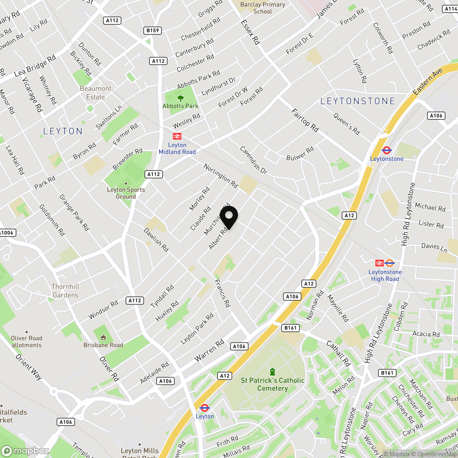 Albert Road is around a 15-minute walk from Leytonstone Tube on the Central line or 17 minutes to Leyton Tube. Alternatively, hop on the Overground at Leyton Midland Road (13 minutes) or Leytonstone High Road (17 minutes). For journeys further afield, Stratford International and Walthamstow Central are within easy reach.