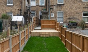 Outside, the long, rear southeast-facing garden extends approximately 55-feet. Enclosed by new timber fencing, it’s thoughtfully landscaped with distinct areas that make the most of the sunshine throughout the day.