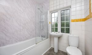 The first floor accommodates two generous doubles bedrooms overlooking the front and rear aspects as well as a comfortable single bedroom or excellent home office - serviced by a fully-tiled family bathroom featuring a bath with shower overhead. The loft space has also been thoughtfully improved having been fully-boarded and insulated with wiring and plug sockets as well as a velux window installed providing a versatile addition space.