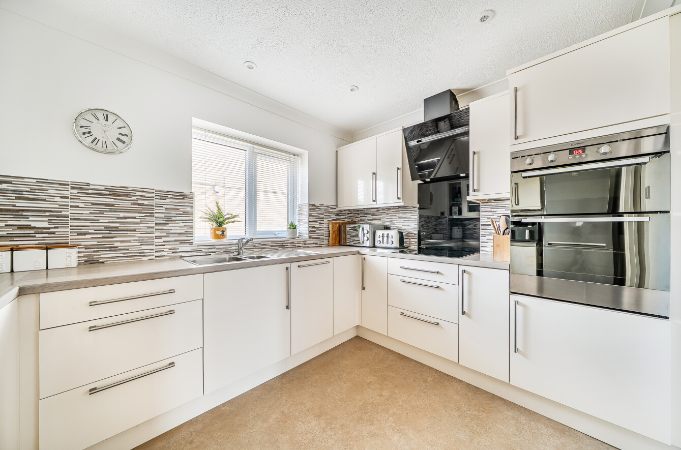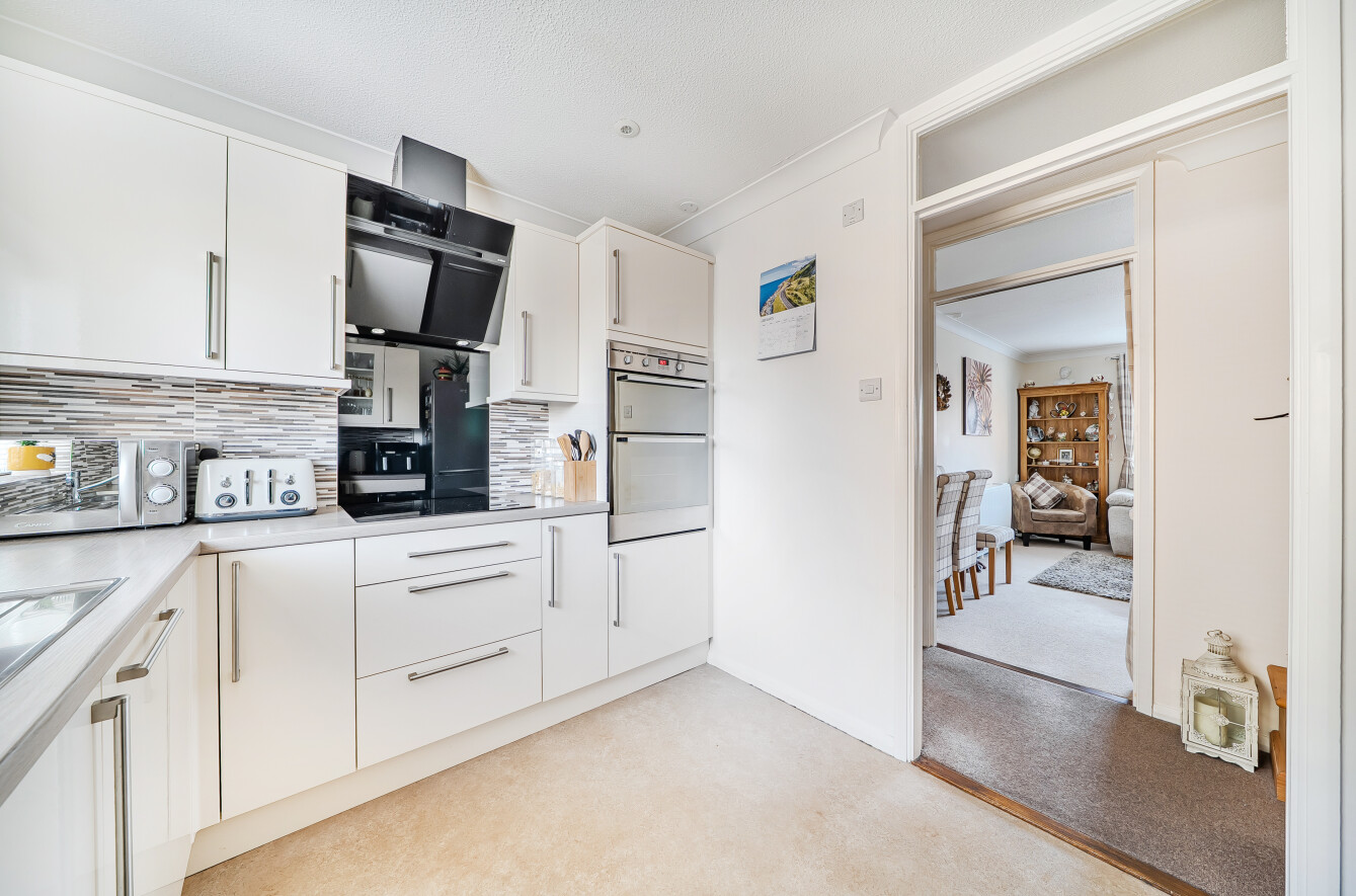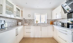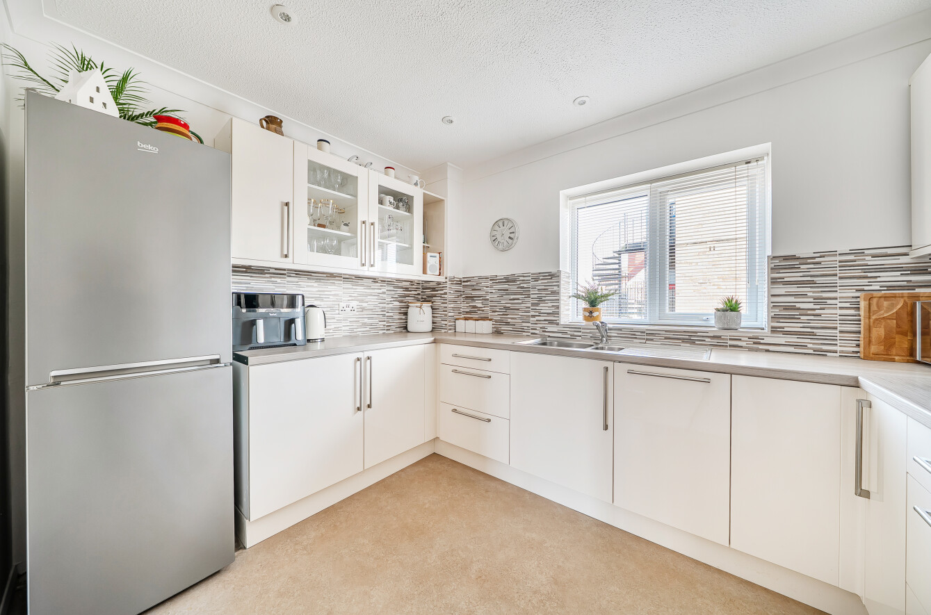 The property is accessed via a private entrance with stairs rising to the first floor. Here you will find a bright and welcoming sitting room enjoying a pleasant westerly aspect. This well-proportioned room offers ample space for both comfortable seating and a dining table and chairs. Opposite the sitting room is the modern fitted kitchen, which features a range of attractive contemporary units along with an integrated eye-level oven, hob with extractor hood and space for an upright fridge/freezer.