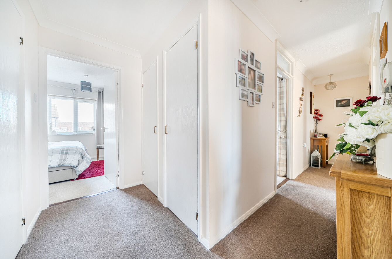 Continuing along the hallway, there are two double bedrooms. The principal bedroom benefits from built-in wardrobes, providing excellent storage, while a well-appointed shower room completes the internal accommodation.