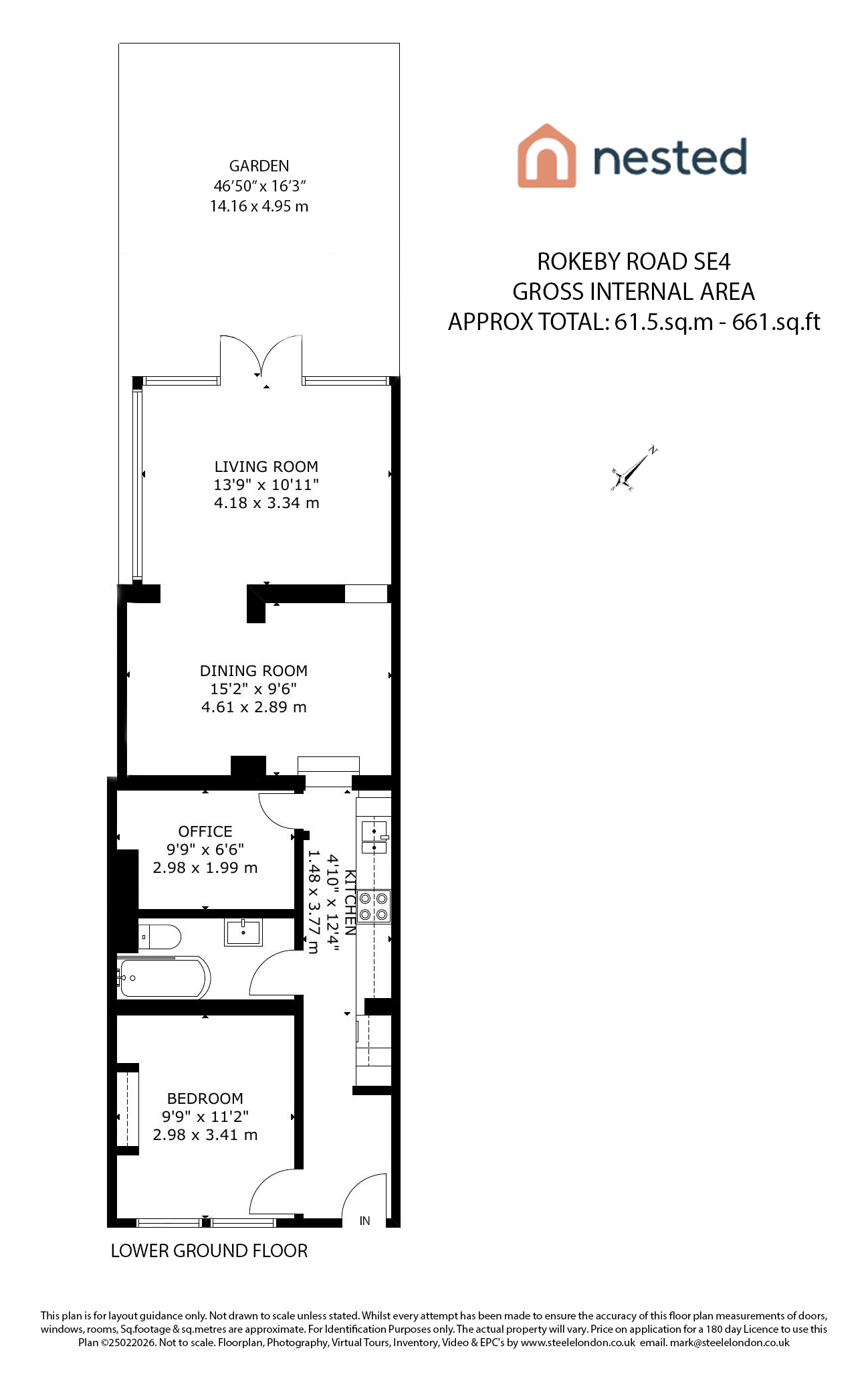 - 661 square feet (61 square metres) overall internal space