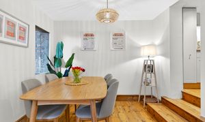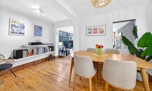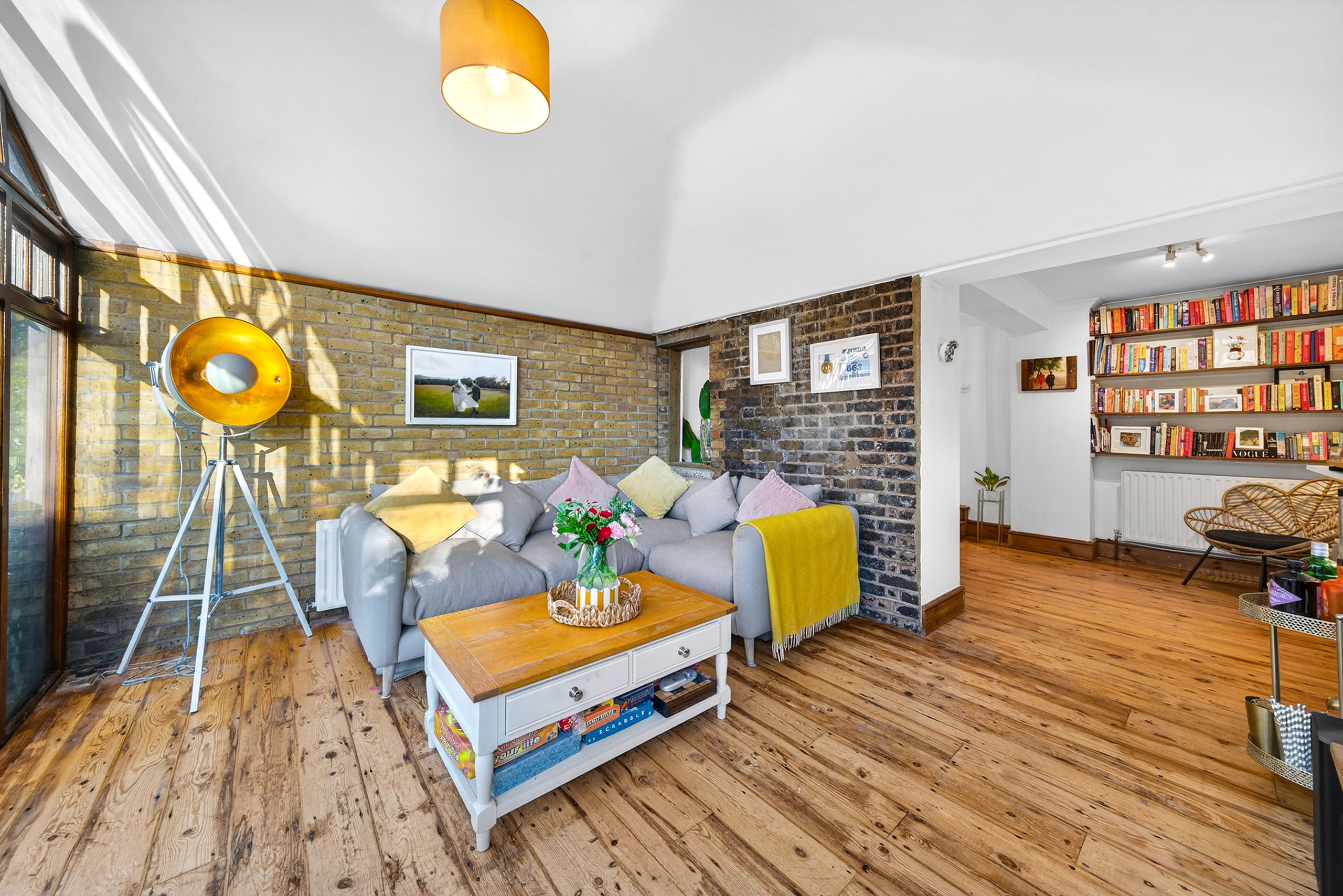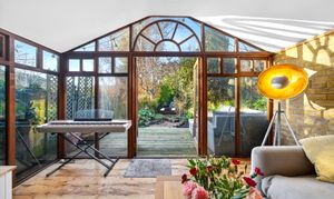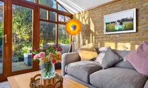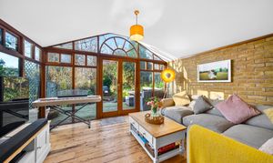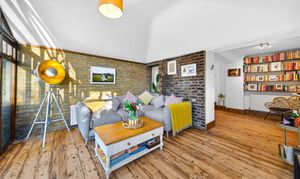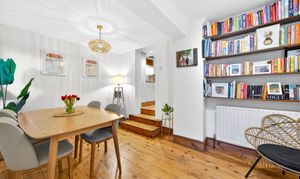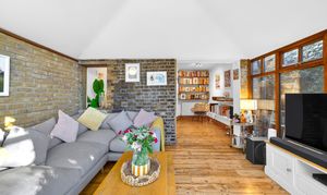 This beautifully presented period conversion garden flat within the Brockley Conservation Area offers a harmonious blend of modern elegance and characterful charm across its spacious layout. The property features two inviting reception rooms with warm wooden flooring, exposed brick walls, and abundant natural light from expansive windows and large glass doors. The kitchen, living and dining areas flow seamlessly; presentation is enhanced with built-in shelving for style and practicality.