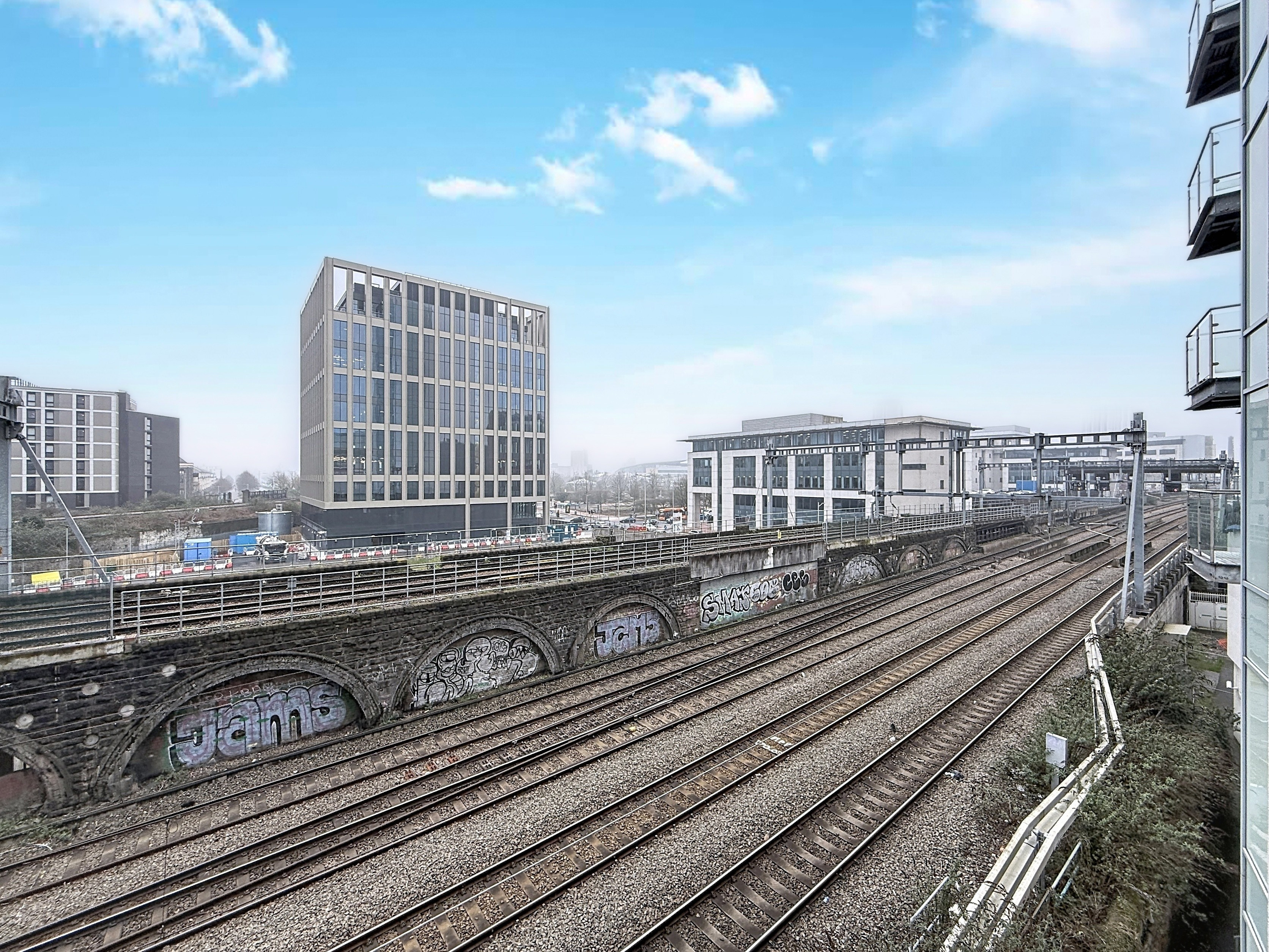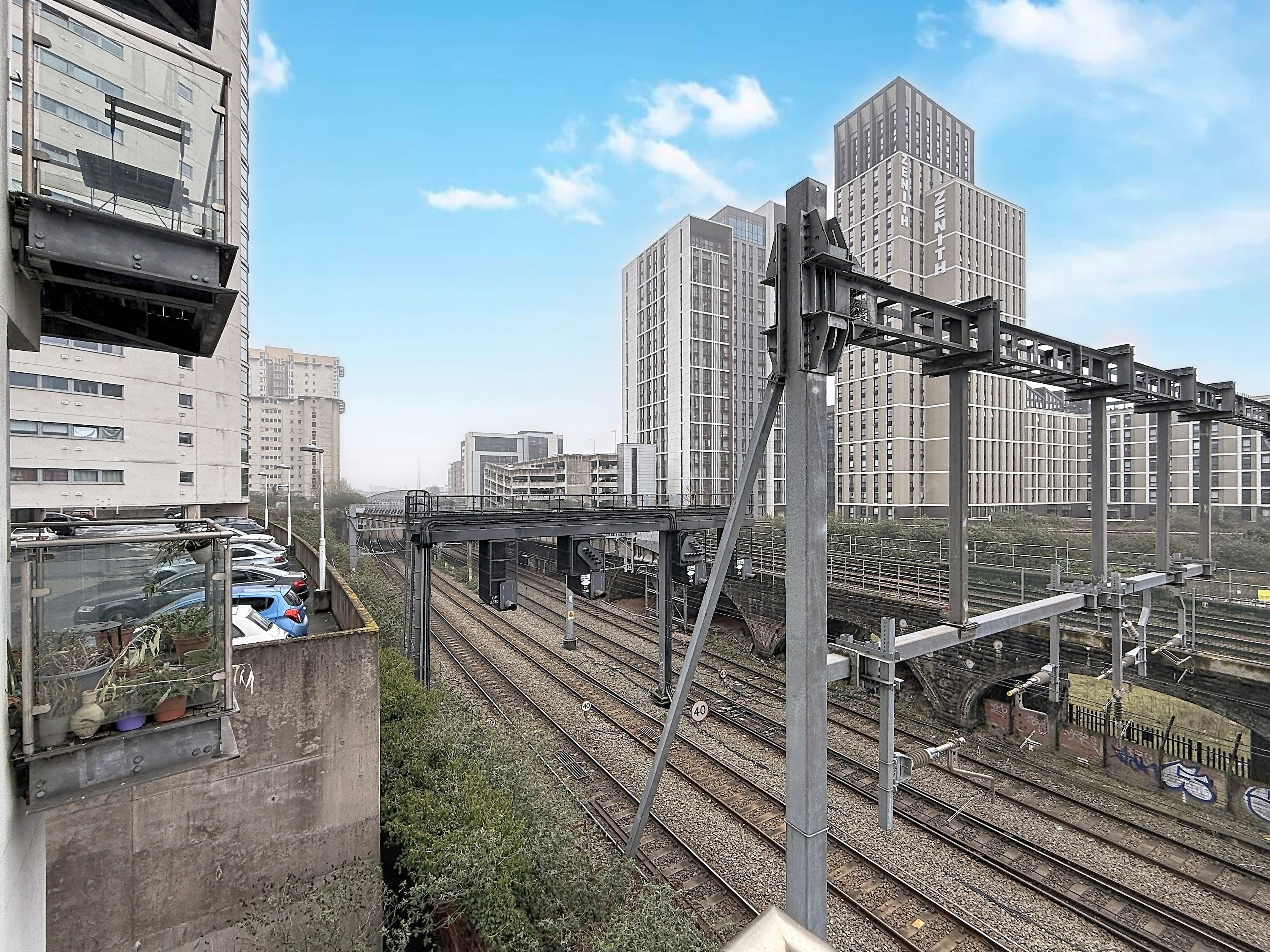 From the balcony there are views across the surrounding cityscape and railway line. Despite its proximity, the railway line creates minimal noise, while also providing an open outlook compared to many city centre properties.