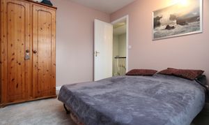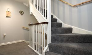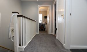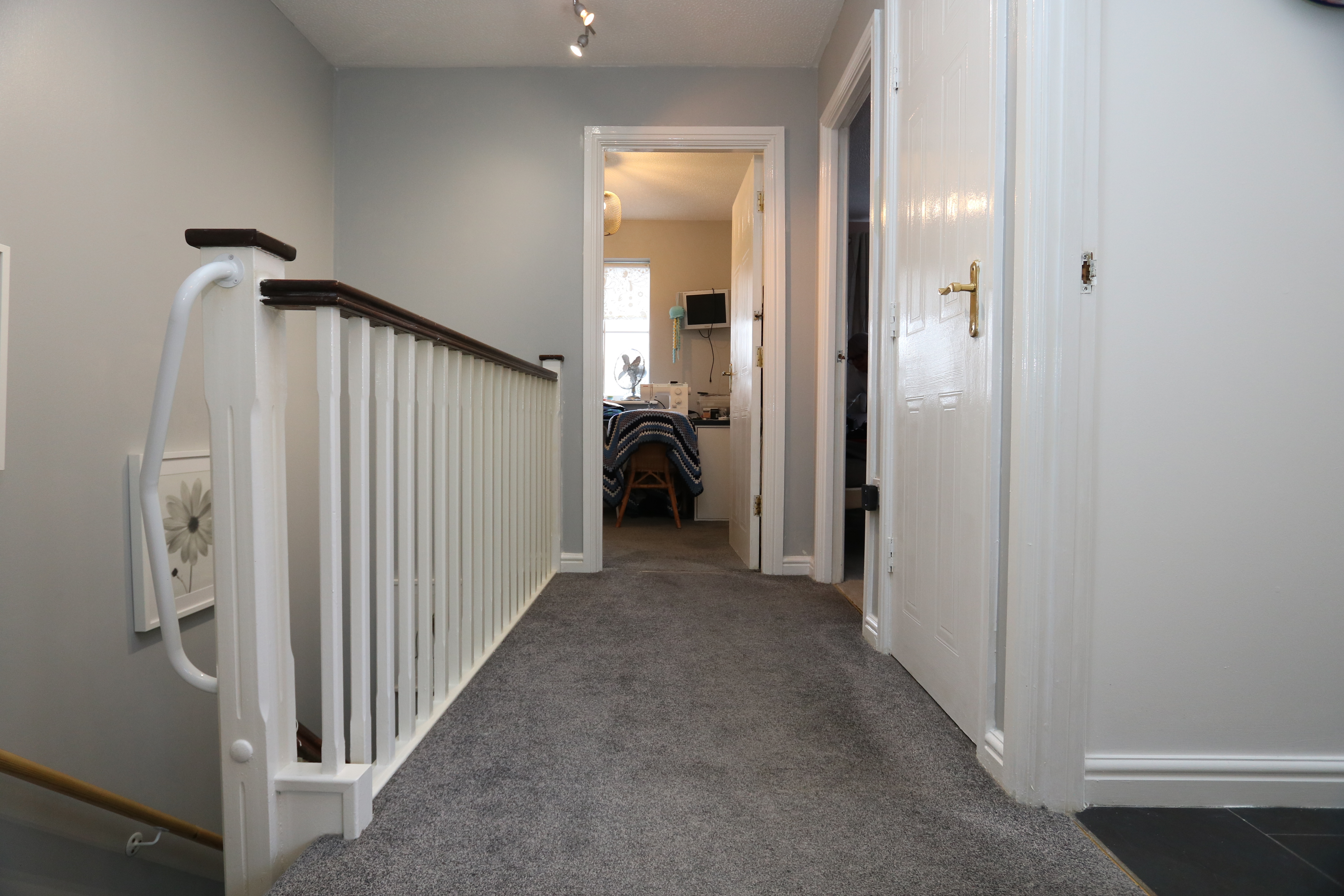 A further carpeted staircase leads up to the second floor landing. The landing is carpeted with smooth walls and a textured ceiling. There are doors leading off to three bedrooms, a storage cupboard and a family bathroom. There is also loft access.