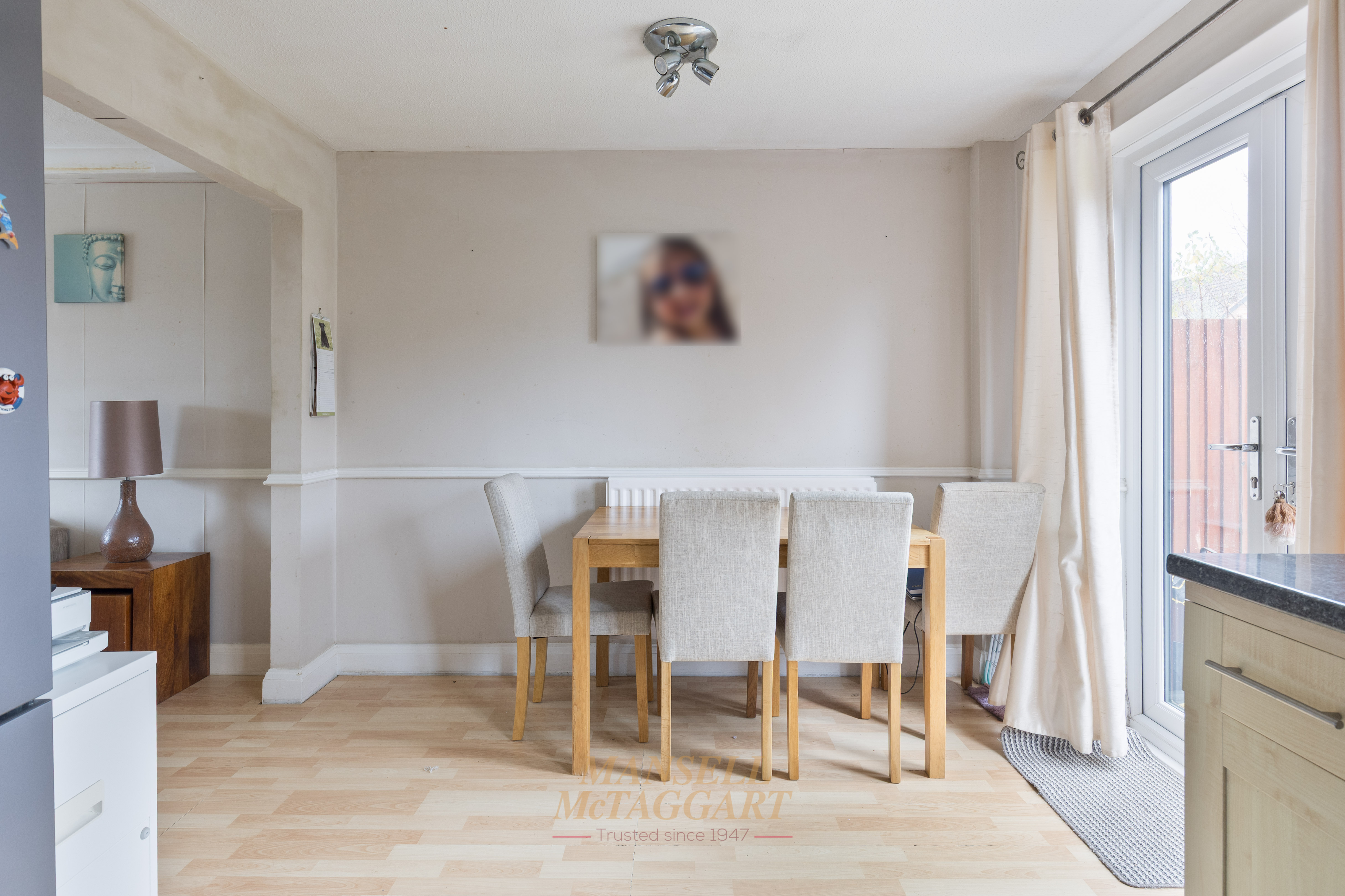 To the rear of the house is a kitchen/dining room. The kitchen being fitted with a range of wall and base units, sink unit, top work surfaces over, integrated gas hob, electric oven, plumbing and space for washing machine and space for fridge/freezer, partly tiled with window overlooking rear garden The dining area has double doors leading to garden with space for a four seater table and chairs if required.