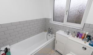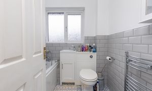 Stairs lead from the entrance hall to the 1st-floor landing, where there is access to the loft and an airing cupboard. The main bedroom is a good size, with fitted wardrobes, and an en-suite shower cubicle with pedestal wash basin and extractor fan. The second bedroom is another good-sized room. The family bathroom has a panel bath with a shower unit over, wash and basin, low-level WC, partly tiled and recessed spotlights.