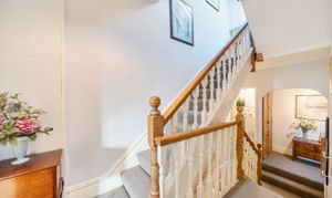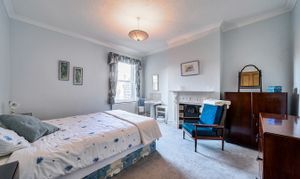 Ascending to the first floor, the landing with a useful storage cupboard branches off on to two excellent double bedrooms, both featuring original fireplaces, and a spacious house bathroom with a separate shower enclosure. The second floor provides a further bathroom, two additional well proportioned double bedrooms with fitted wardrobes, and a fifth bedroom that works well as a home office or nursery.
