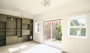 Upon entering, you are greeted by a light and welcoming hallway that flows into a generously sized living room, featuring fitted storage and sliding patio doors opening onto the expansive rear garden. From the living room, an open-plan kitchen diner offers a range of fitted base and wall units, a hob, eye-level oven, and side access to the garden.