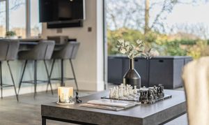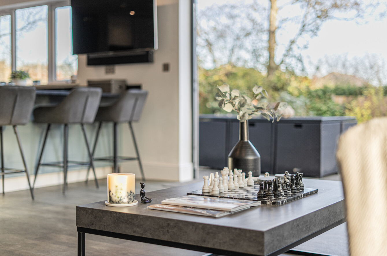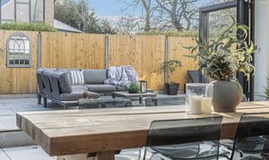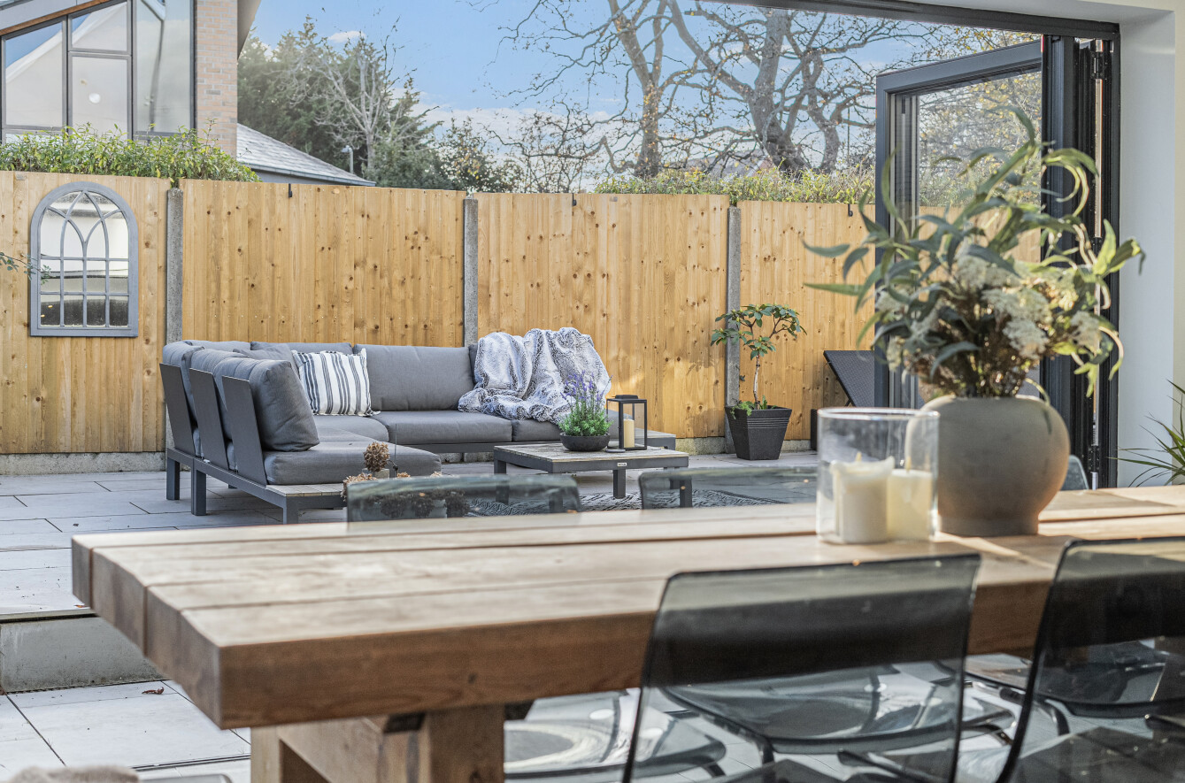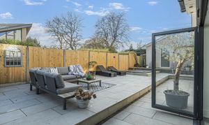 Outside, the landscaped garden provides a serene retreat, predominantly laid to lawn with an expansive raised patio, ideal for family entertaining. There is also scope for an outdoor kitchen, lounge area, and hot tub, creating the ultimate outdoor sanctuary. To the front, a generous driveway provides ample parking and access to a double garage.