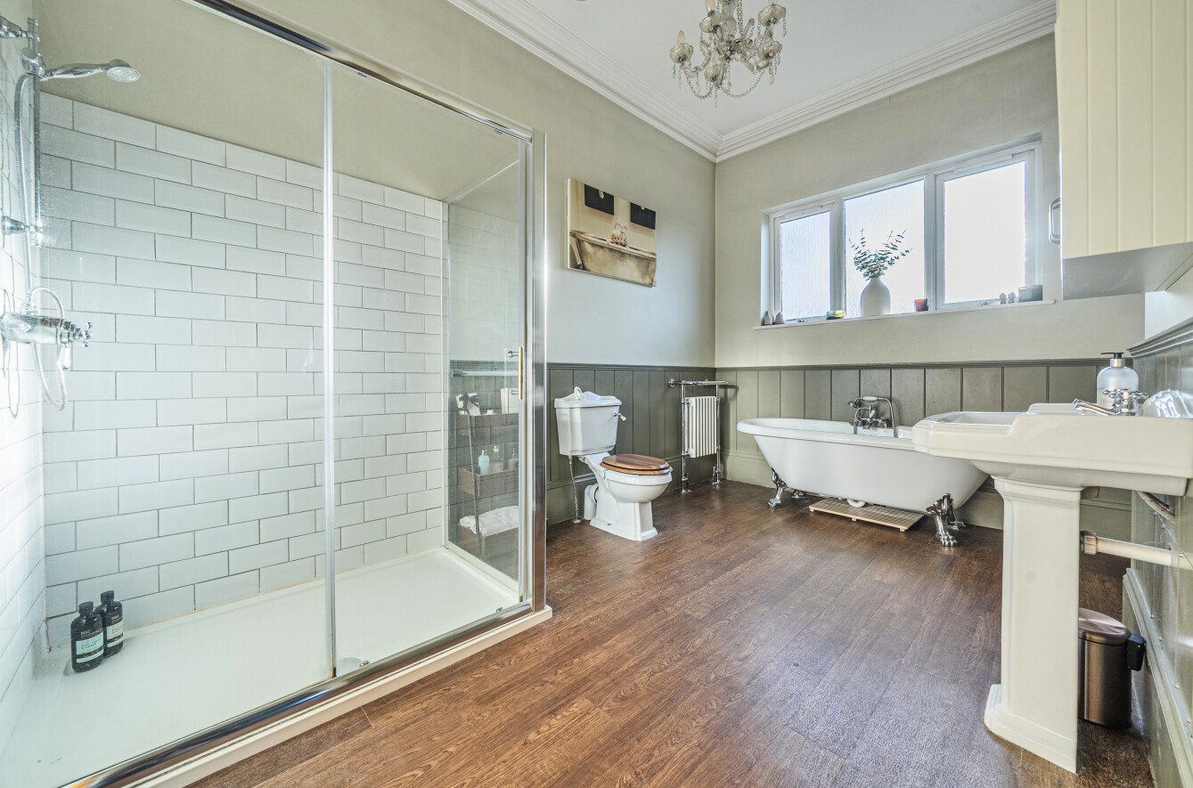 On the first floor, five well-proportioned double bedrooms offer an enviable sense of space, two with luxurious en-suite facilities. A stylish four-piece family bathroom sits within the traditional part of this home and another servicing the rear bedrooms. A second staircase leads to a fully boarded loft room, offering the flexibility to create a principal suite complete with dressing area and a spa-inspired en-suite.